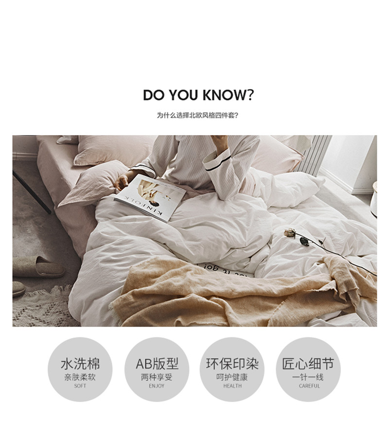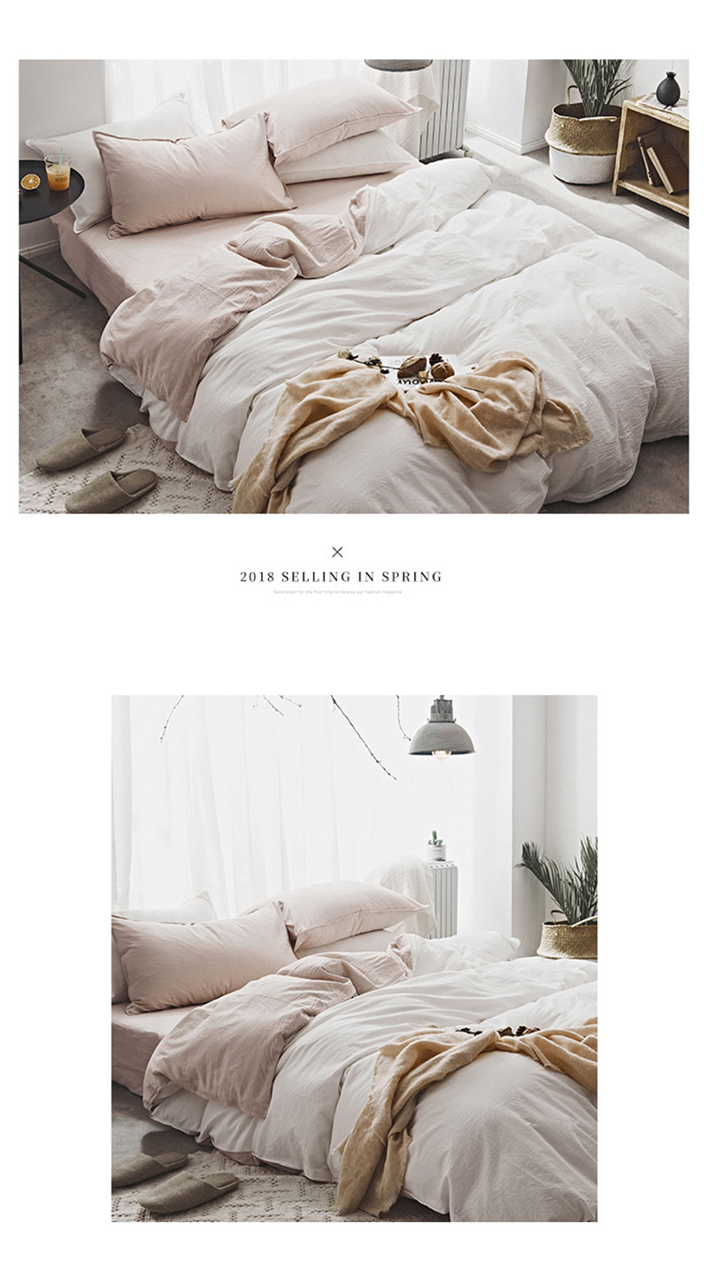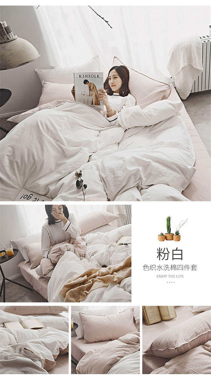 2018素色水洗四件套 粉白