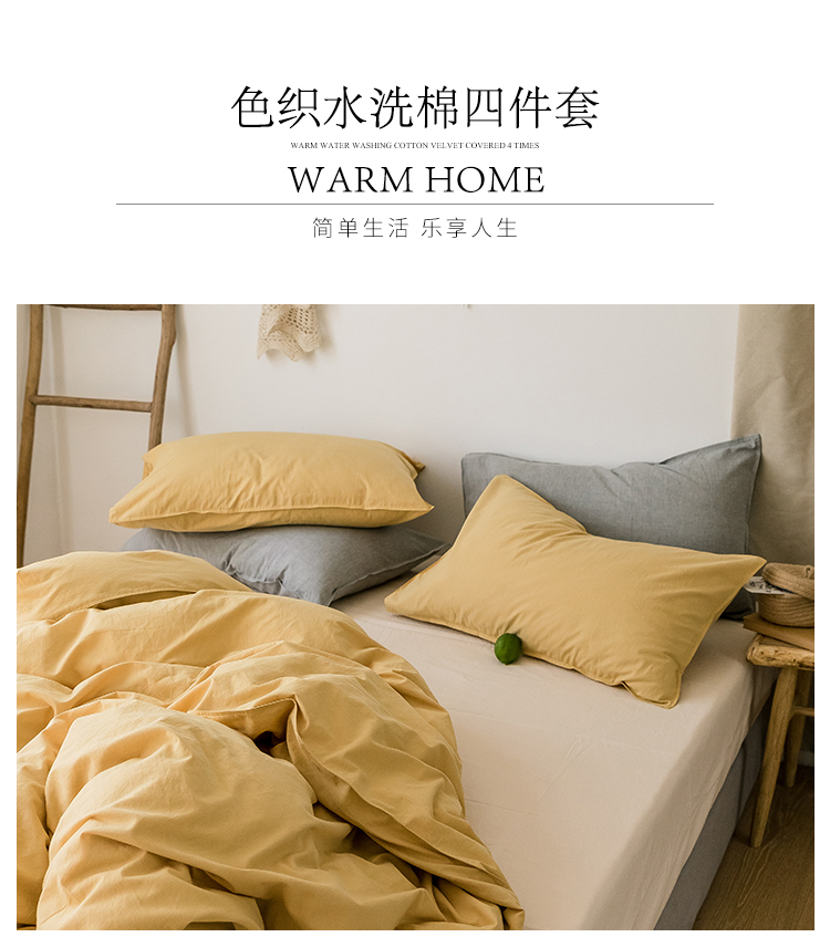 2019新款素色四件套素-嫩黄