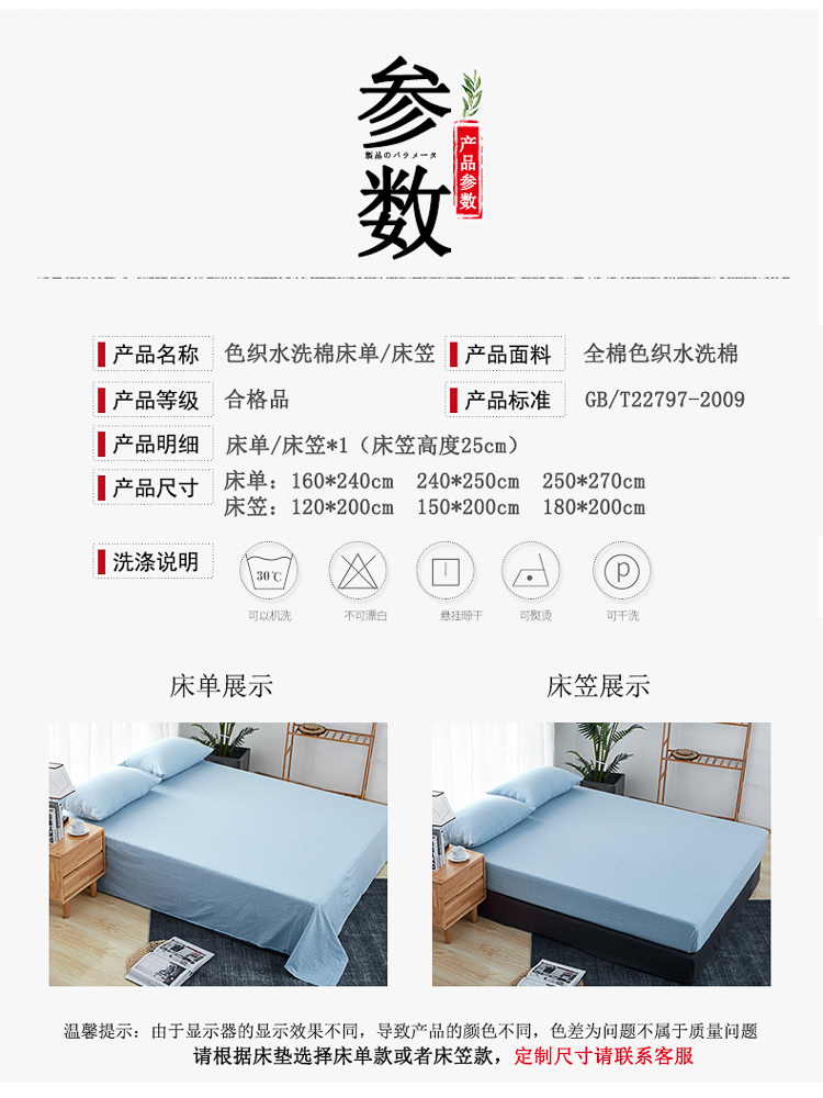 (总)久典家纺 色织水洗棉基础款纯色系列单品床笠