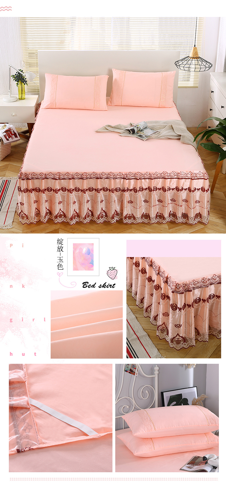 情恒家纺 2019新款蕾丝床裙系列绽放 玉色