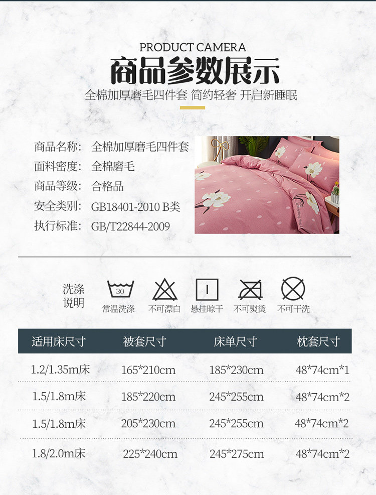 商品名称:雲归梦 2019新款多规格全棉加厚生态磨毛四件套 春风絮语