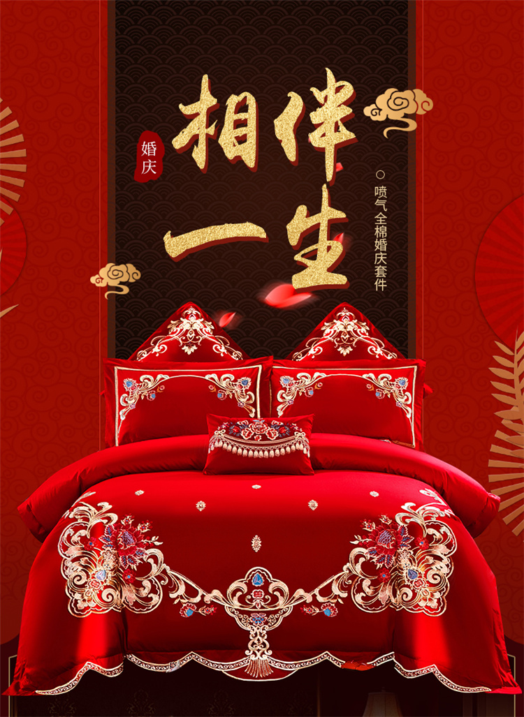 千禧婚庆专供 2019喷气全棉婚庆四件套多件套 相伴一生