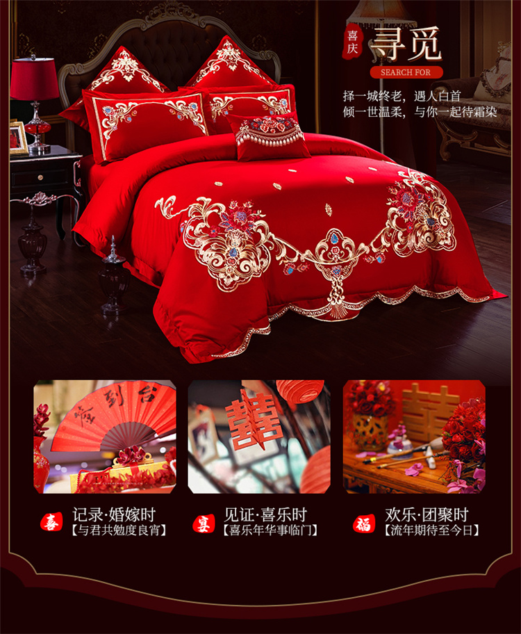 (总)千禧家纺 2024新款双面长绒棉磨毛加厚保暖绣花婚庆套件,大喜大吉,鸿运贺禧,欢乐喜事,欢喜,美满爱情,喜上眉梢,喜约,相伴一生,挚爱