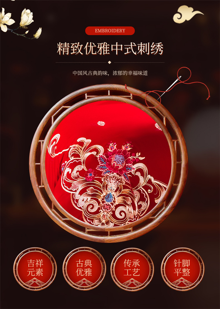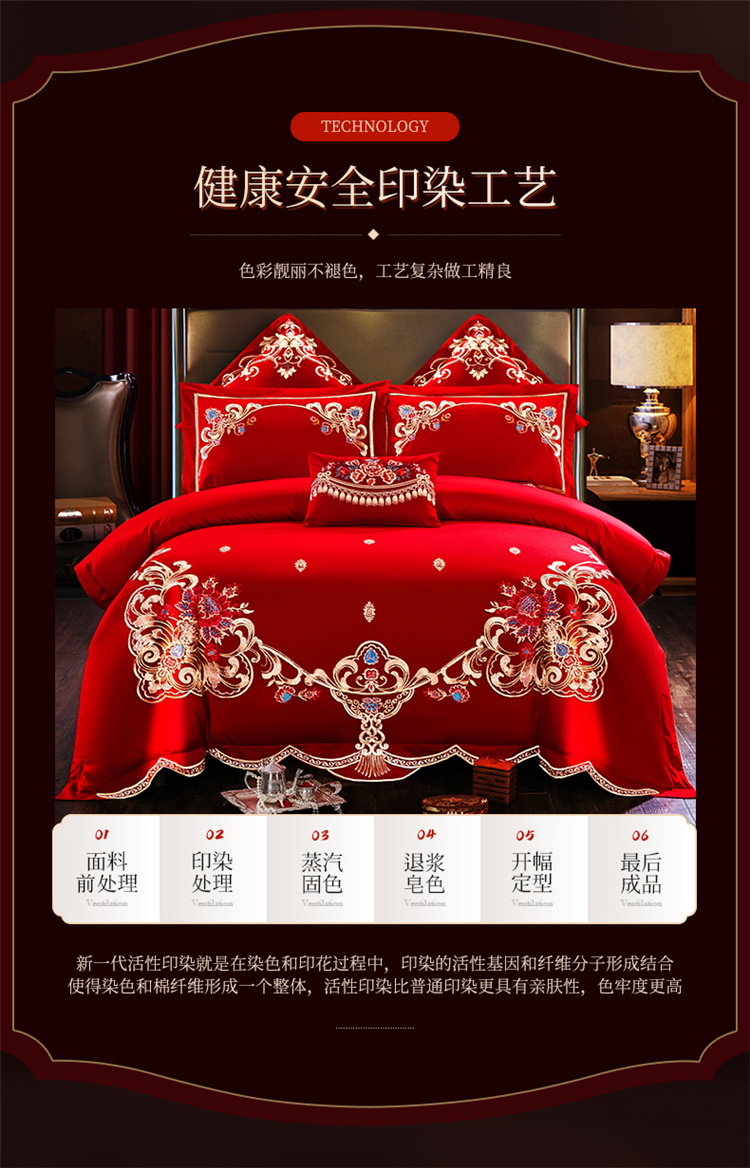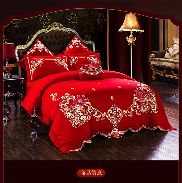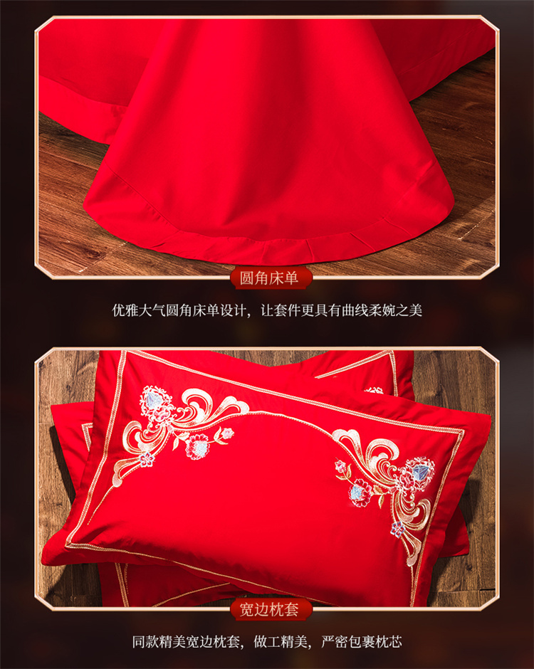 千禧 2024新款贡缎磨毛婚庆绣花多件套 盛世华庭(彩色绣),盛世华庭(彩色绣)
