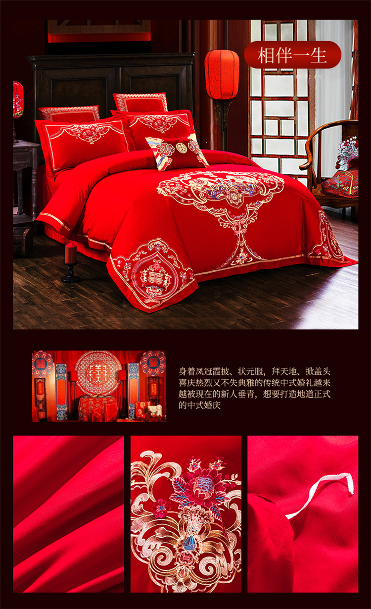 商品名称:千禧婚庆专供 2019喷气全棉婚庆四件套多件套 相伴一生