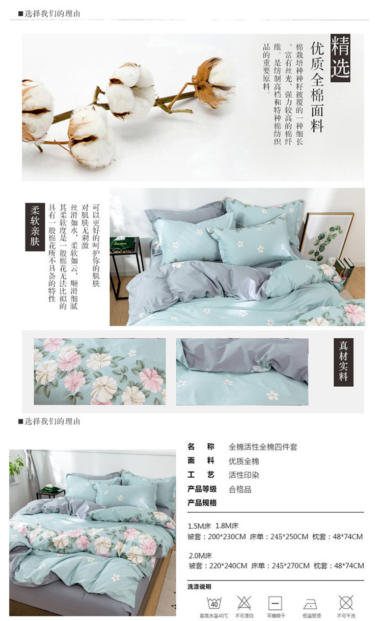 (总)星期三家纺 2019新款全棉活性四件套(加老板微信有会员价)