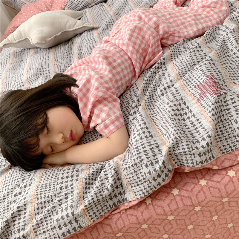 时年 2019全棉小可爱四件套 格纹星星
