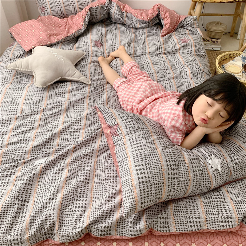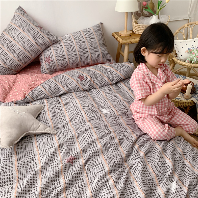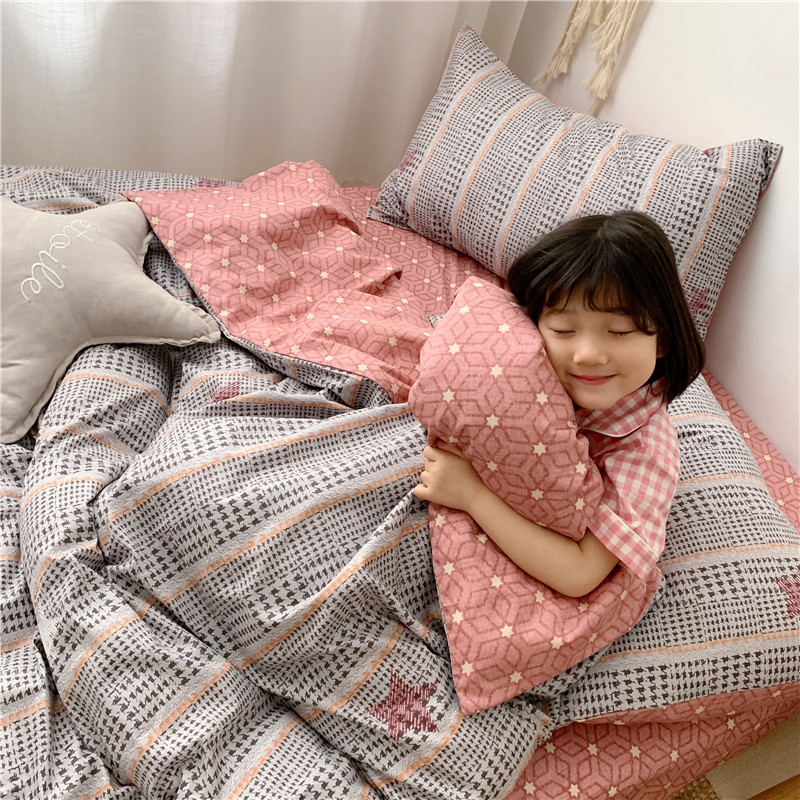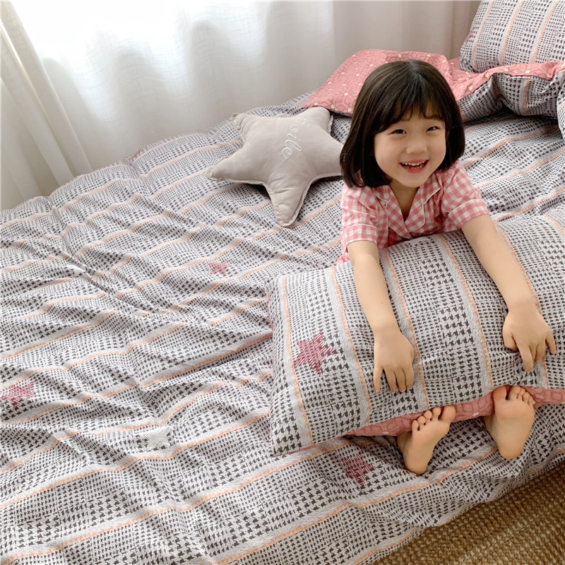 商品名称:时年 2019全棉小可爱四件套 格纹星星