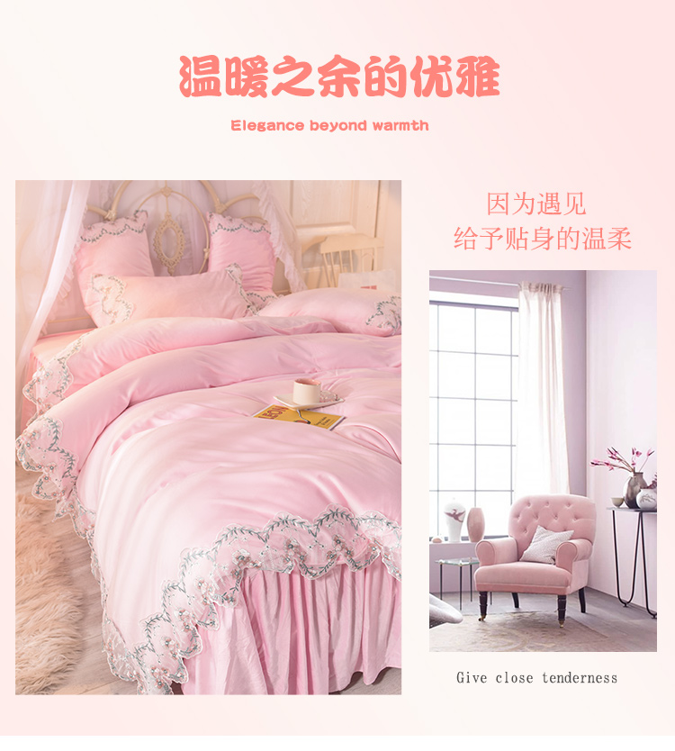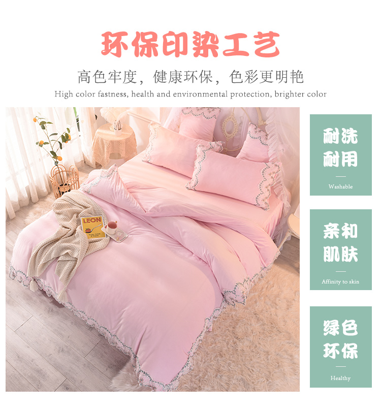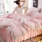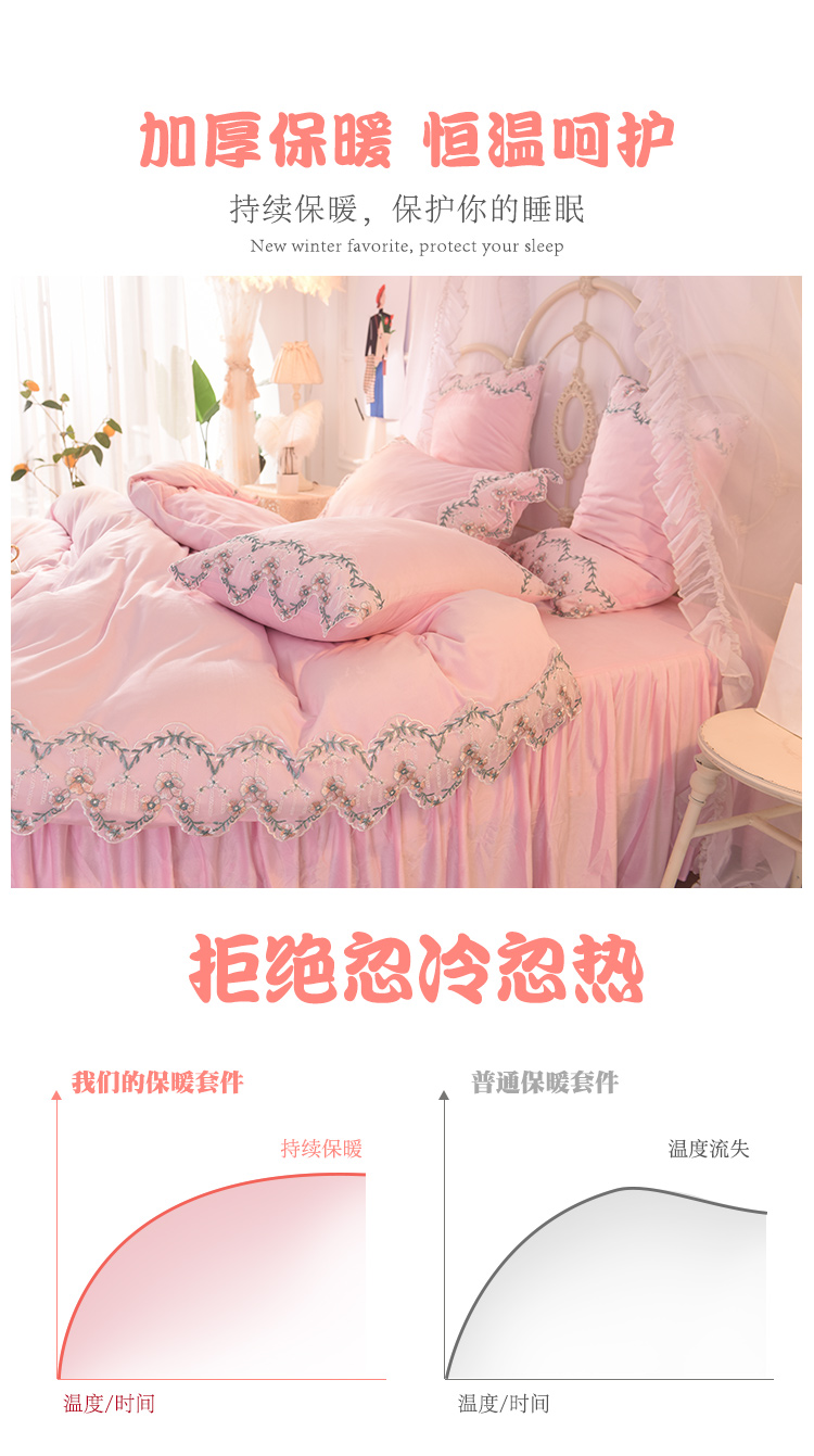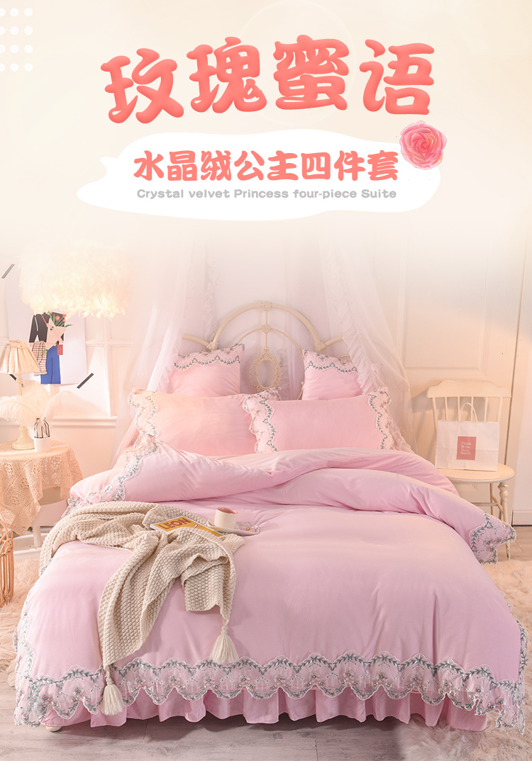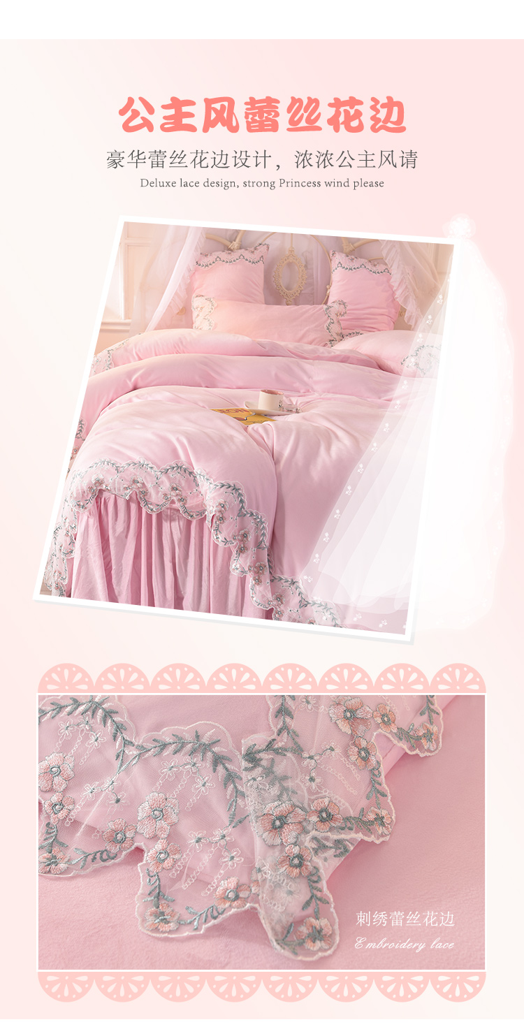 绒世界 秋冬绒款花边款和毛巾绣四件套床裙款 花边款粉色