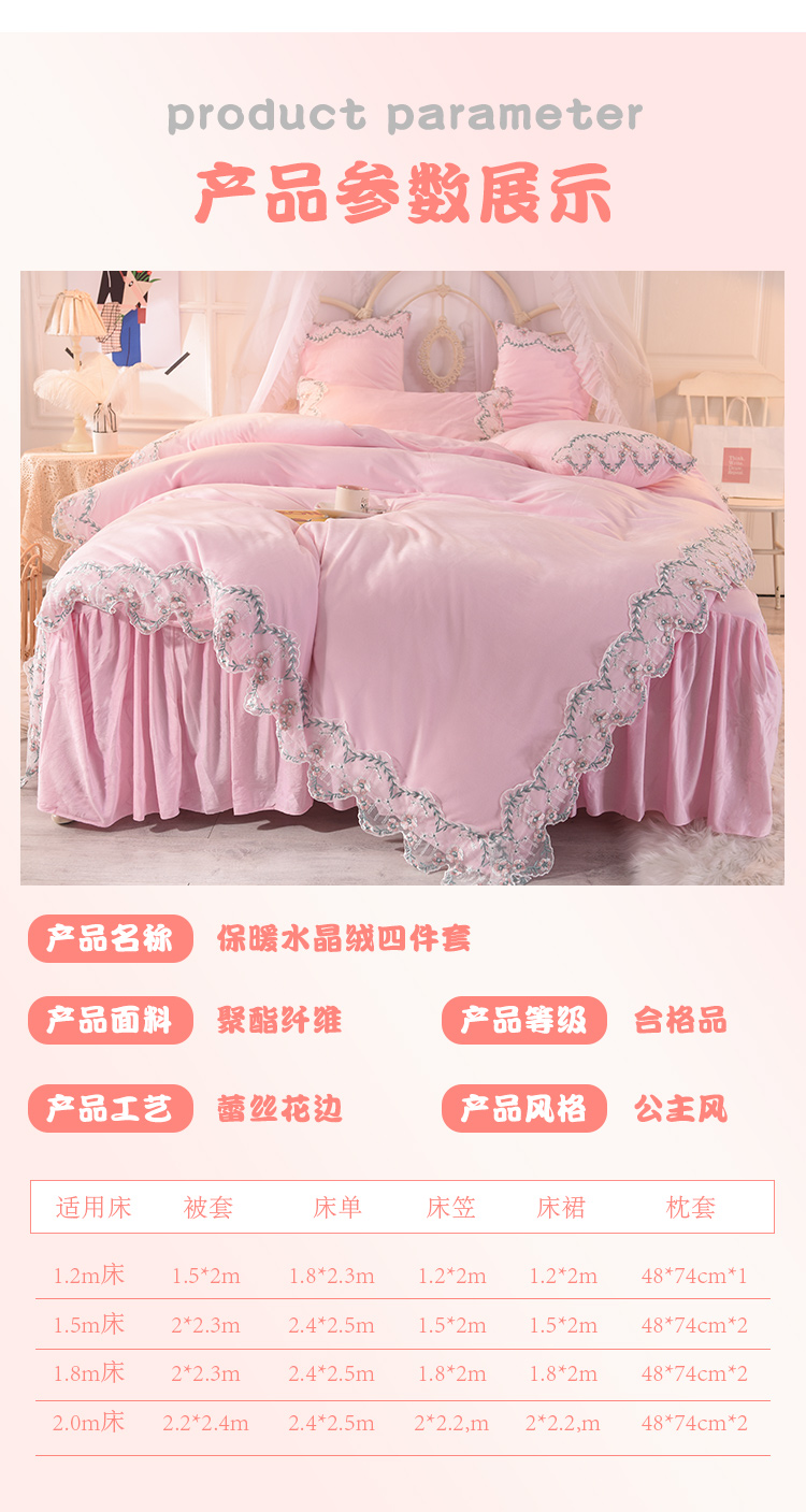 商品名称:绒世界 秋冬绒款花边款和毛巾绣四件套床裙款 花边款粉色