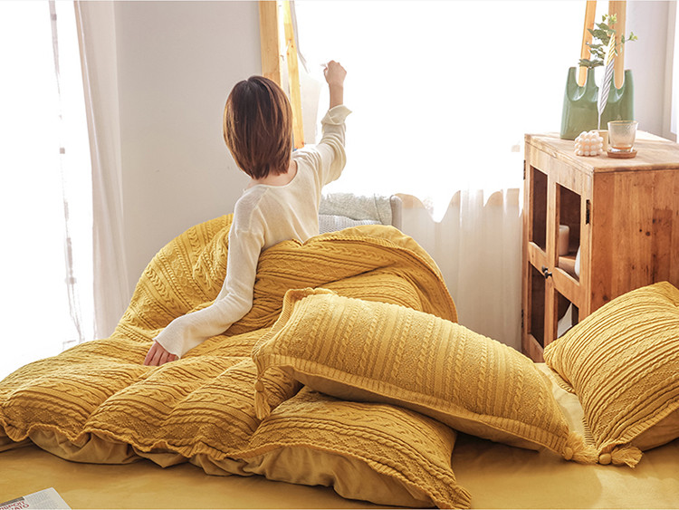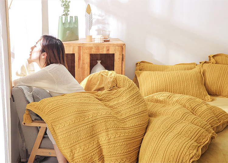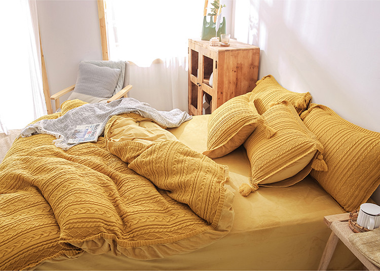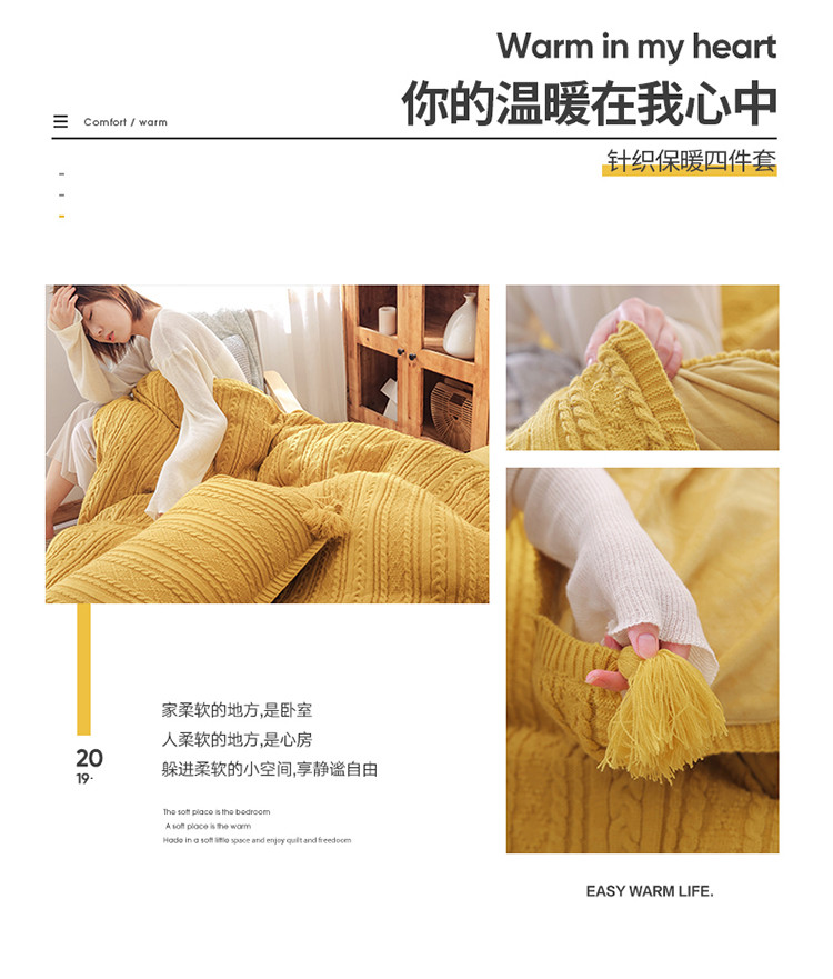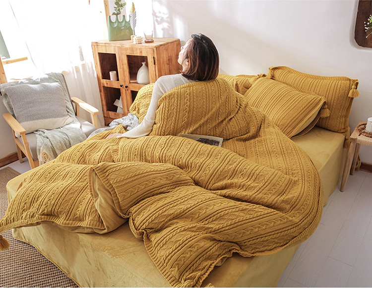 眠屿 2019新款针织绒四件套 姜黄