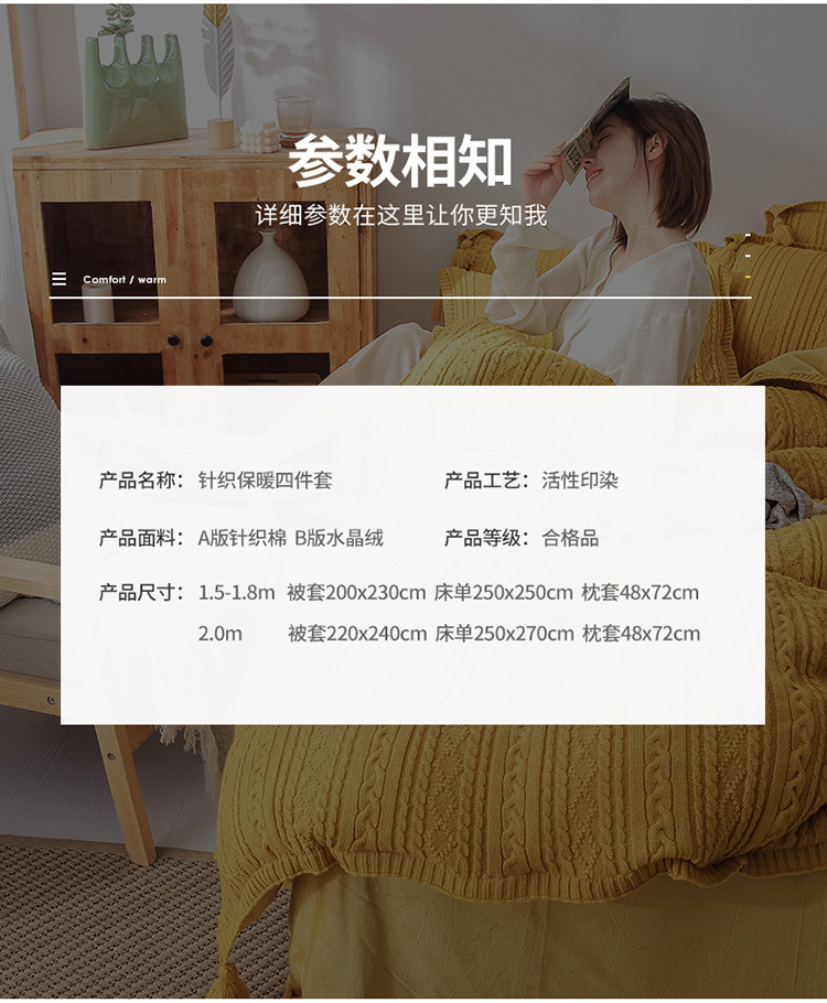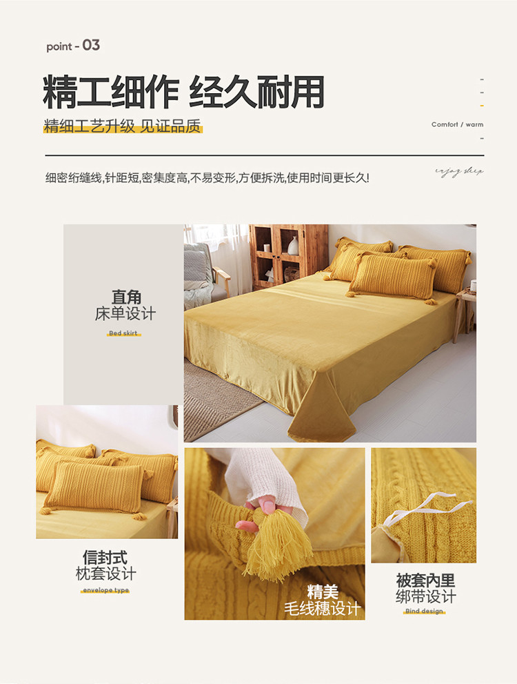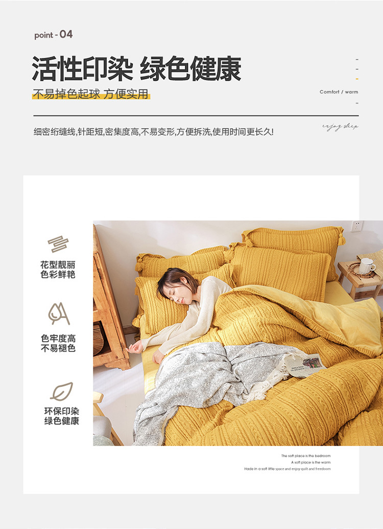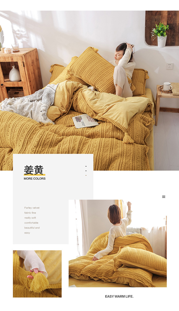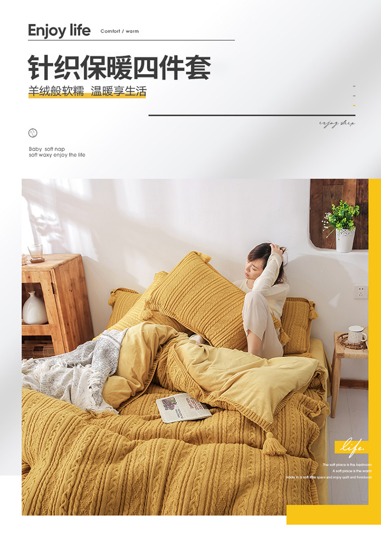 商品名称:眠屿 2019新款针织绒四件套 姜黄