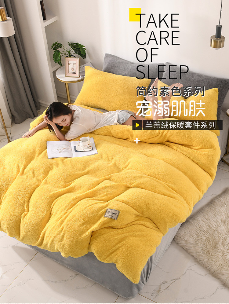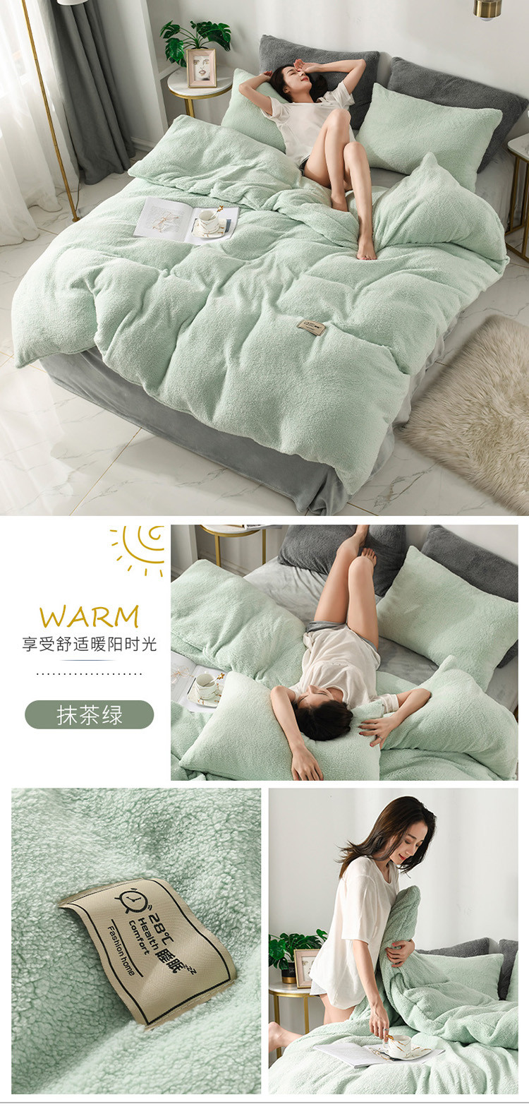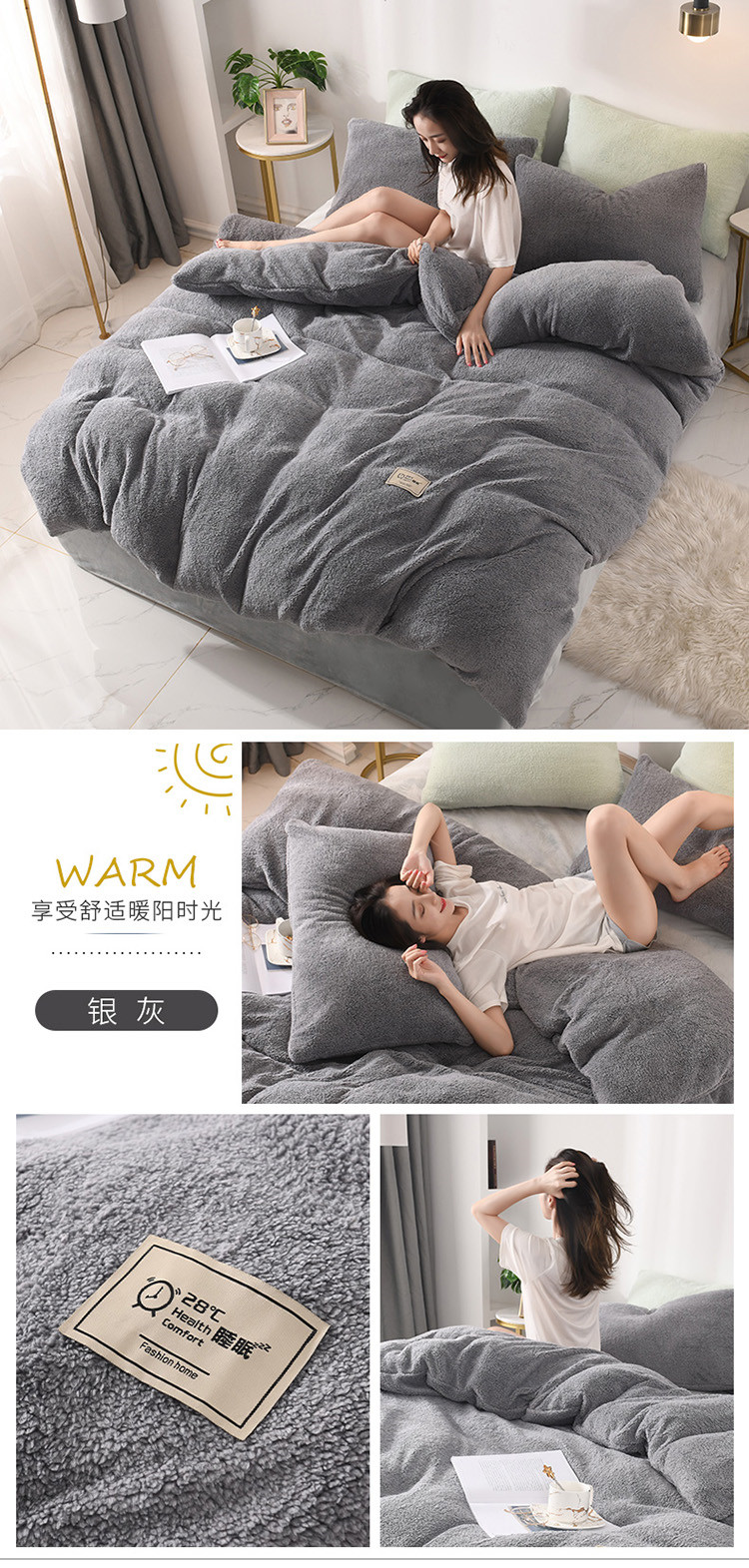 (总)朗莎家纺 2019新款加厚保暖羊羔绒四件套单品单被套床单