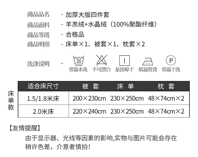 商品名称:(总)朗莎家纺 2019新款加厚保暖羊羔绒四件套单品单被套床单