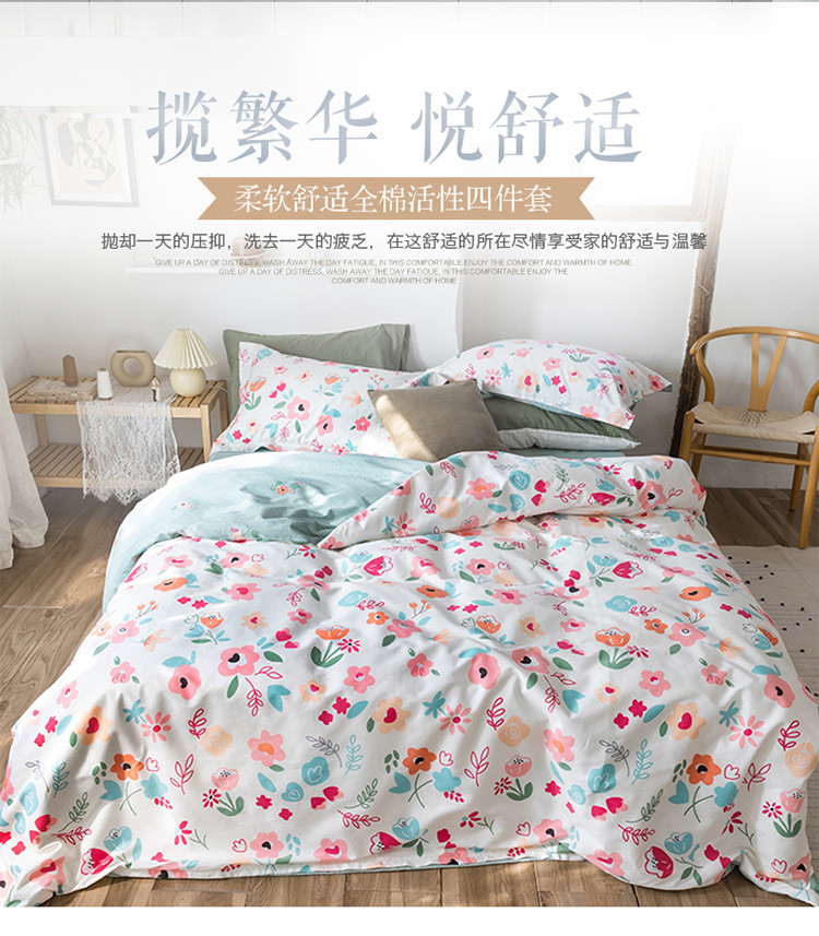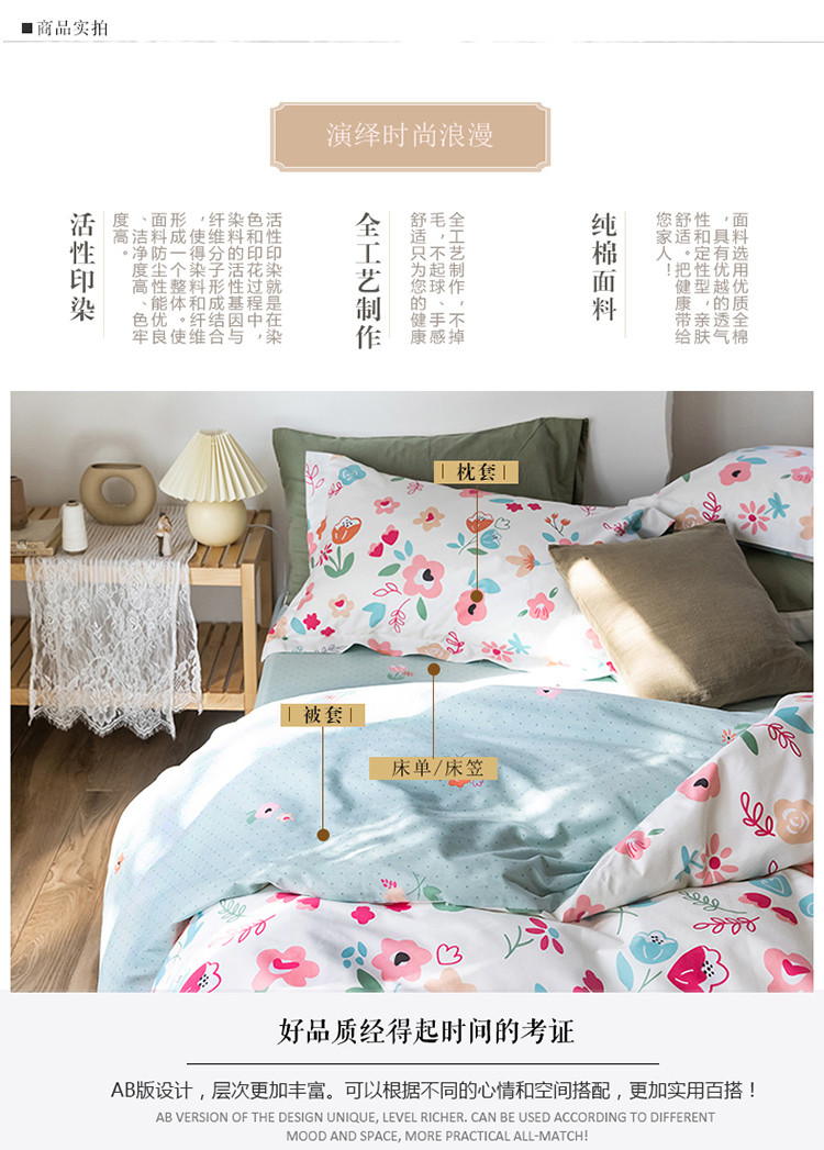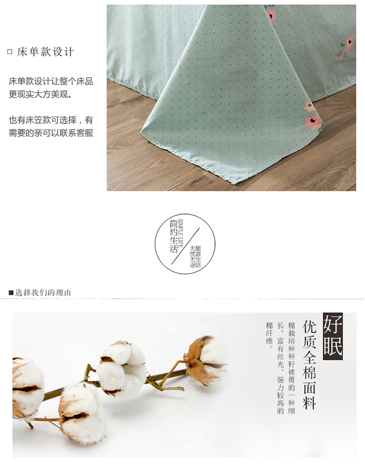 窝米 2020春夏新品全棉13372四件套小波西风系列小花花,小花花