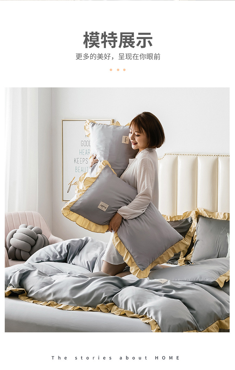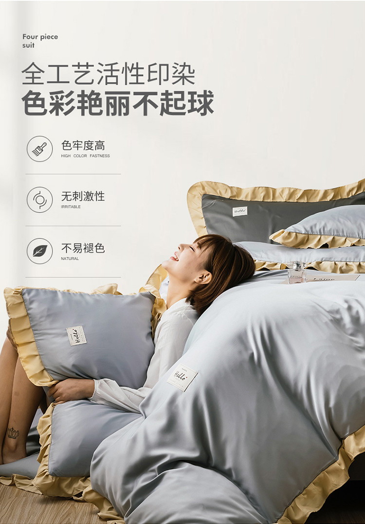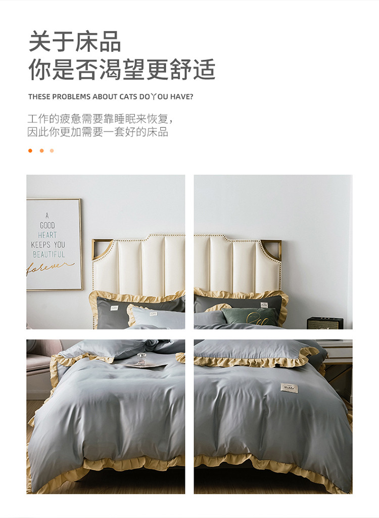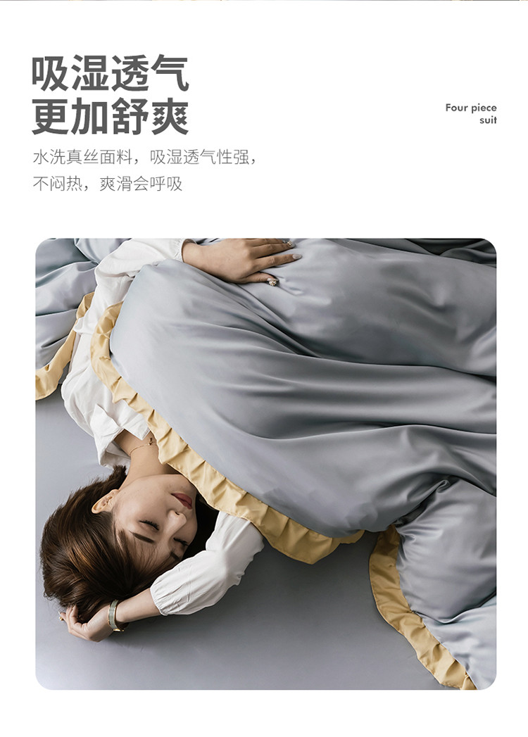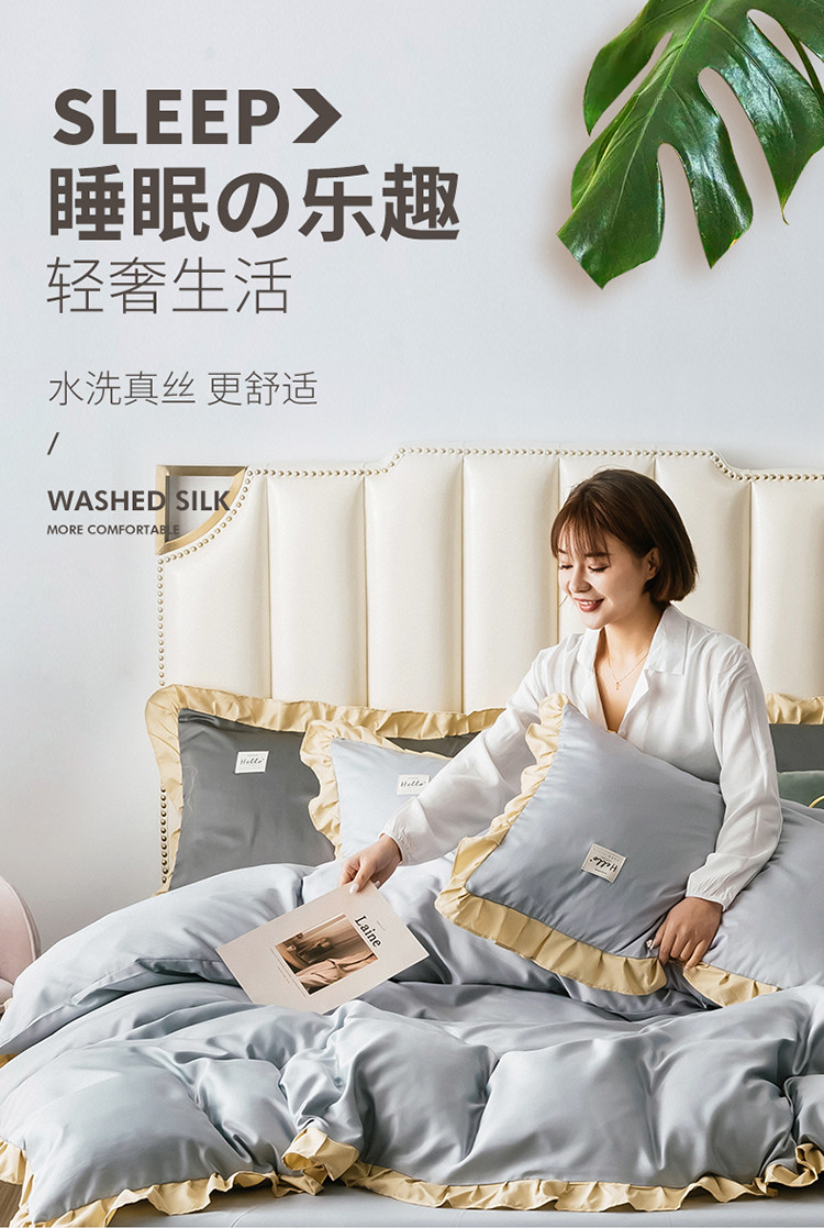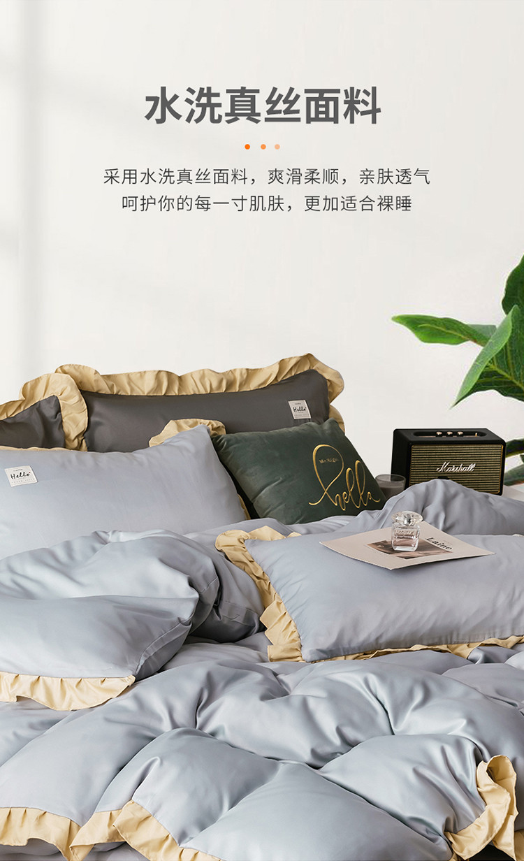 商品名称:芃成 2020新款水洗真丝库里南花边四件套 库里南-浅灰