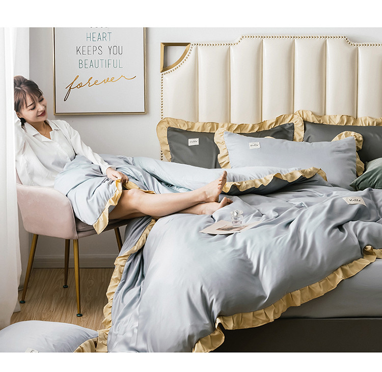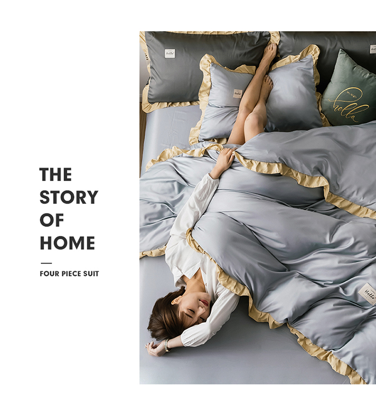芃成 2020新款水洗真丝库里南花边四件套 库里南-浅灰