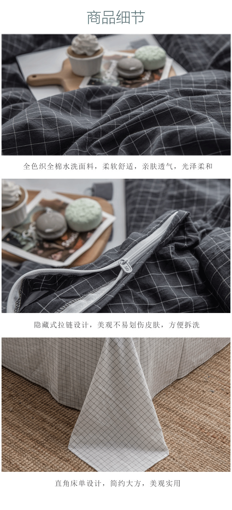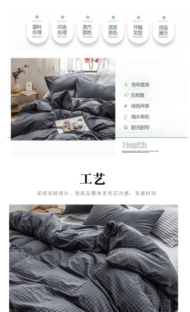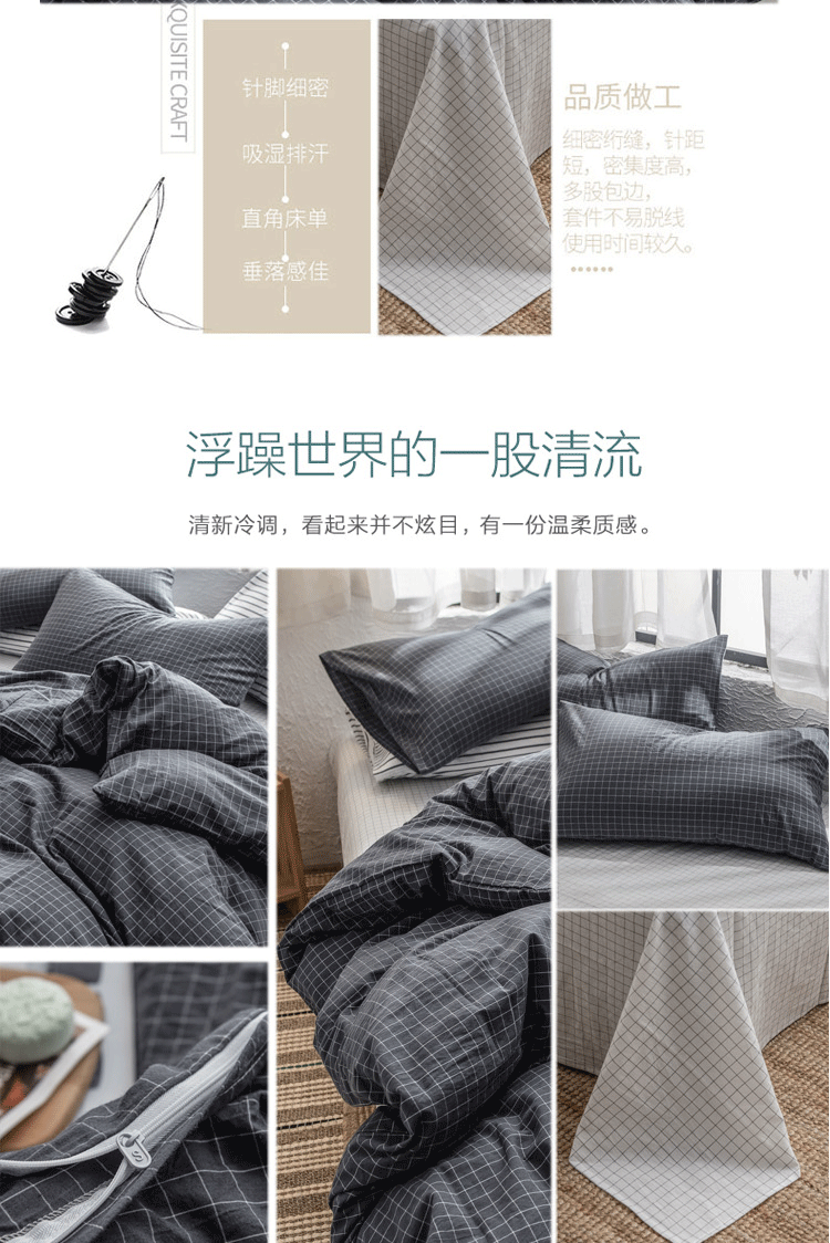 当前位置: 91家纺网 > 商品网购 > 床品套件 > 四件套 > 色织四件套 > 佳梦达 2020新款全色织全棉水洗双拼四件套 黑中格