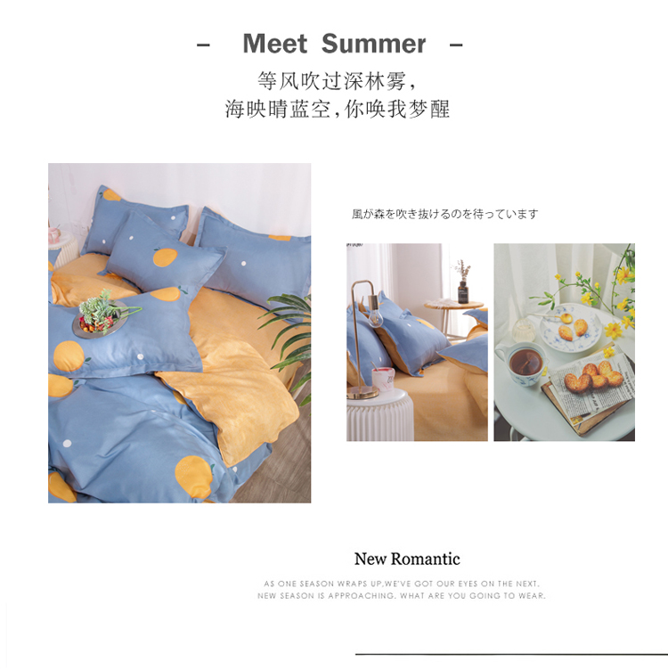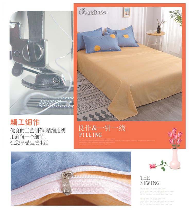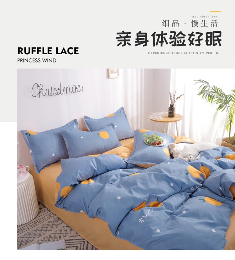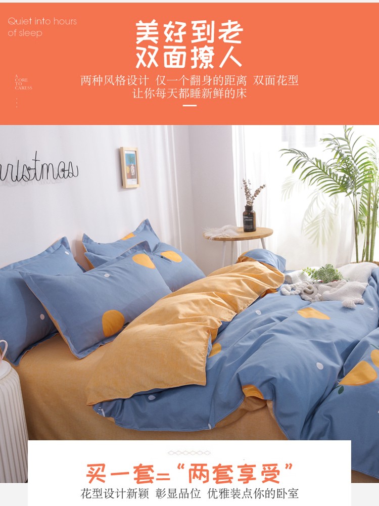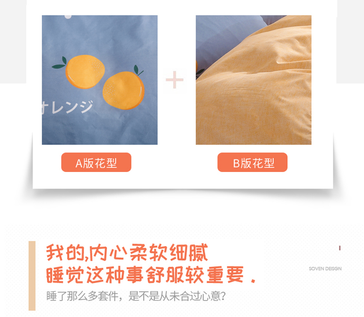 米粒 芦荟棉四件套 橙心橙意