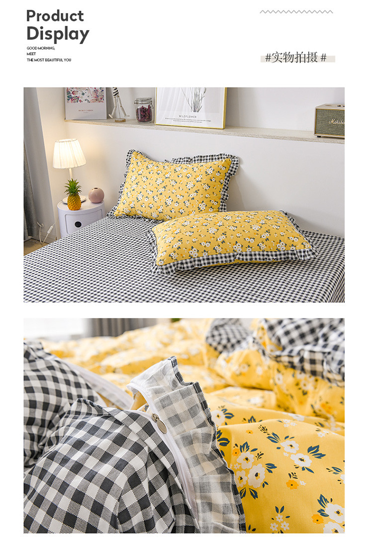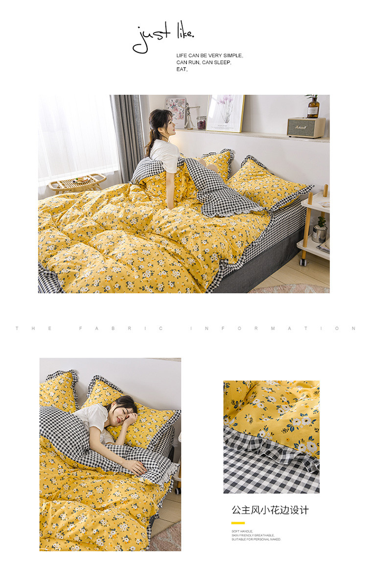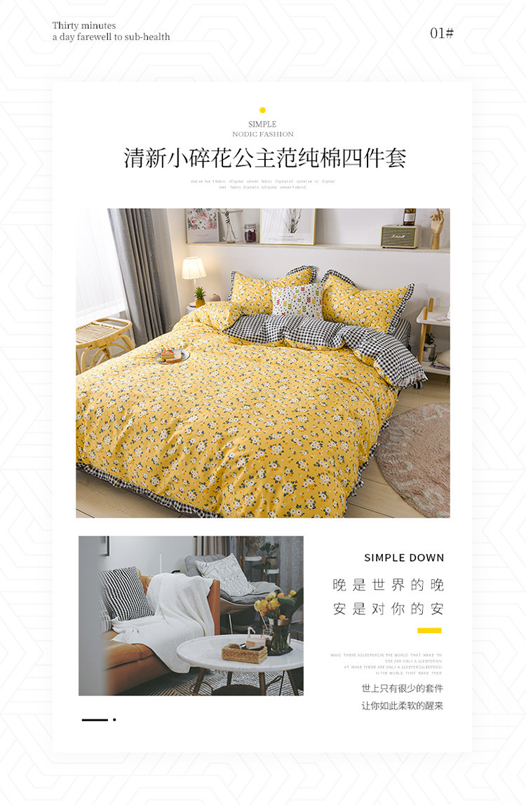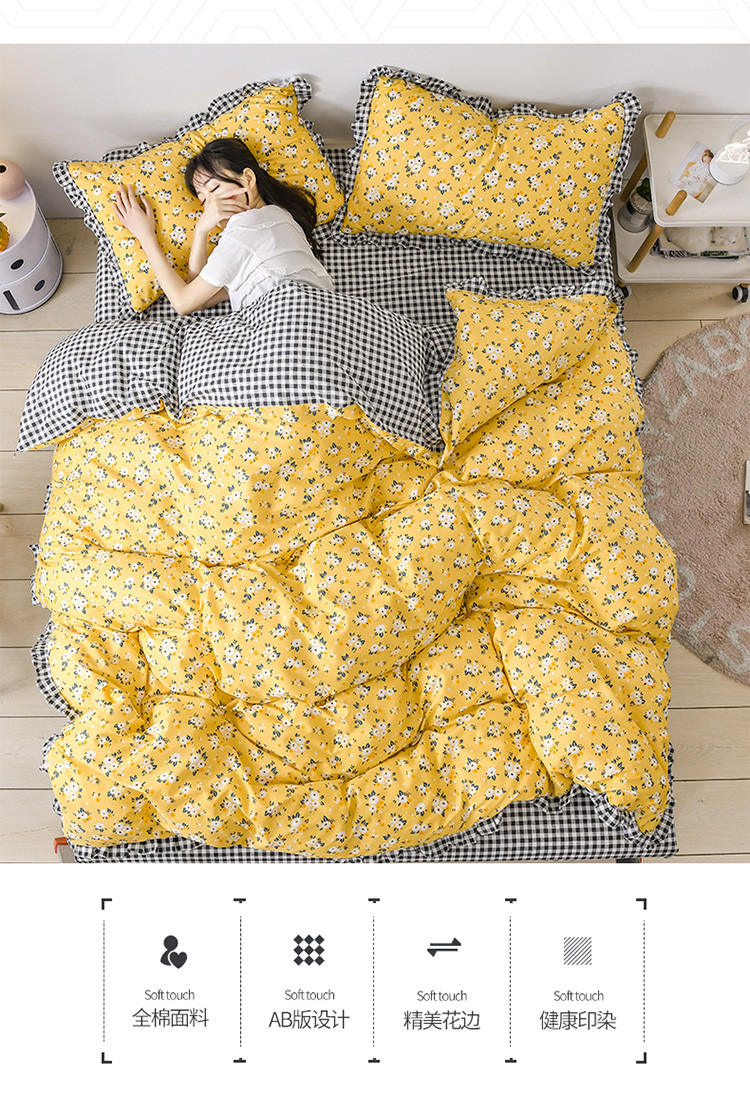 金麦家纺 2020新款清新小碎花全棉花边四件套 心心朵朵