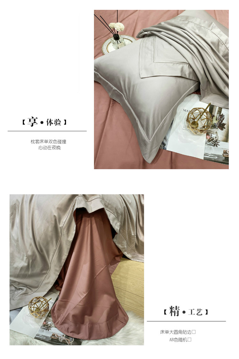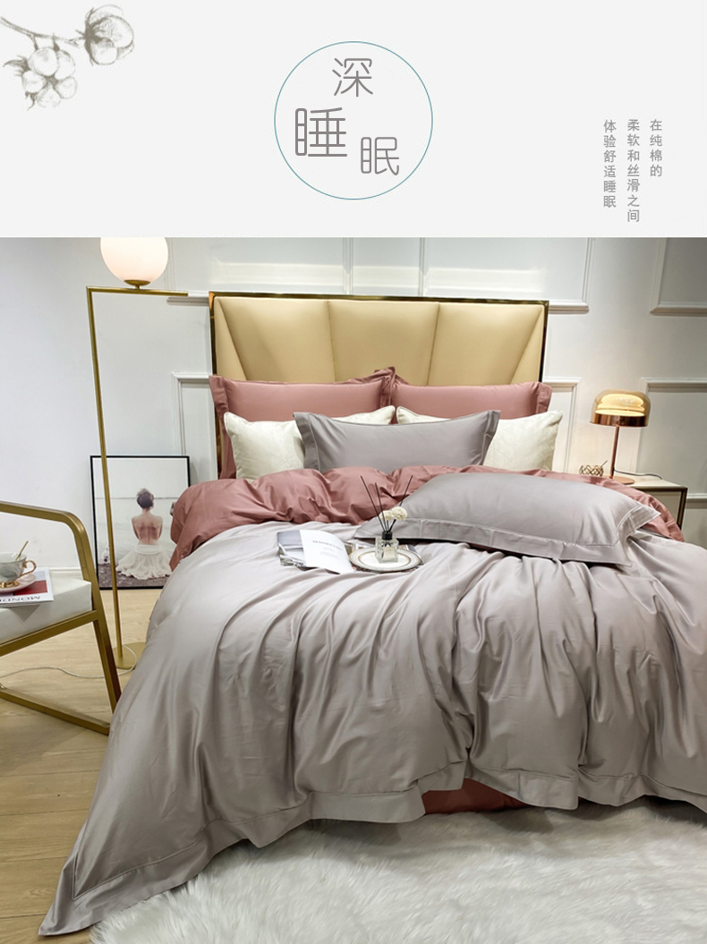商品名称:十九色家纺 新款50*50撞色长绒棉高端埋线款全棉四件套 皎星