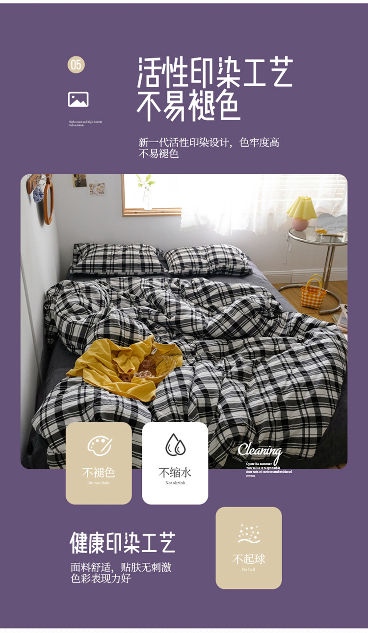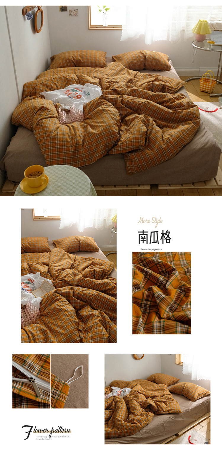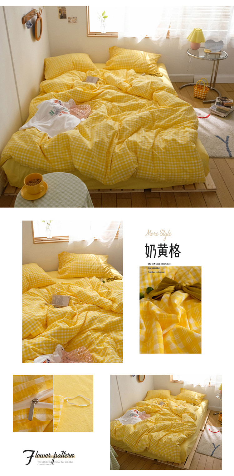 (总)桃子家居 2020新款纯棉冰淇淋系格子色织水洗棉四件套