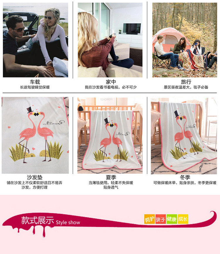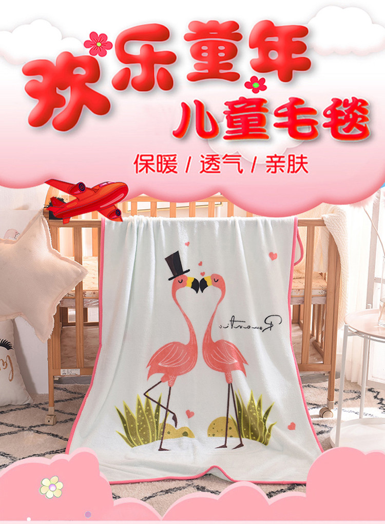 商品名称:茗婷家纺 2025新款单层定位童毯 恋爱火烈鸟