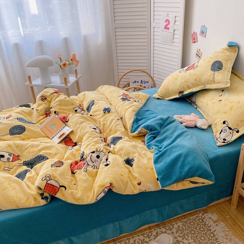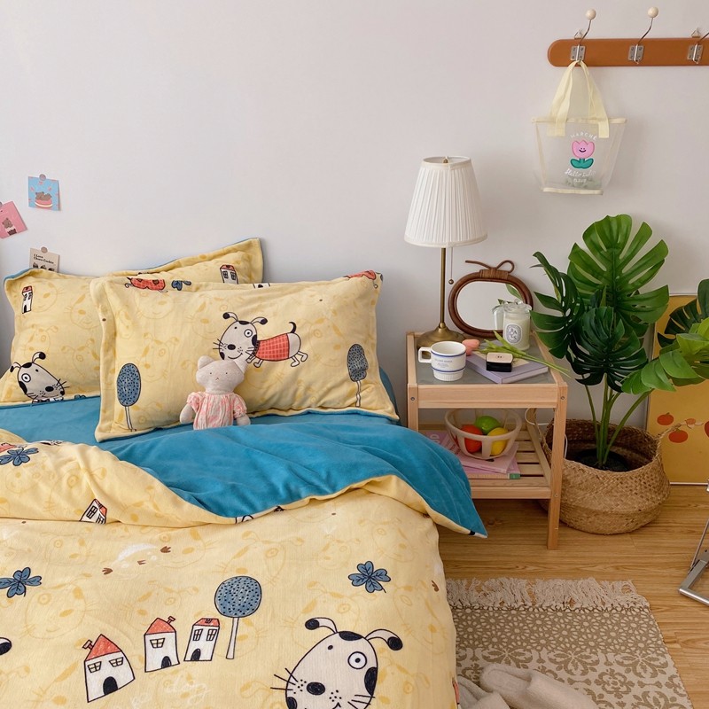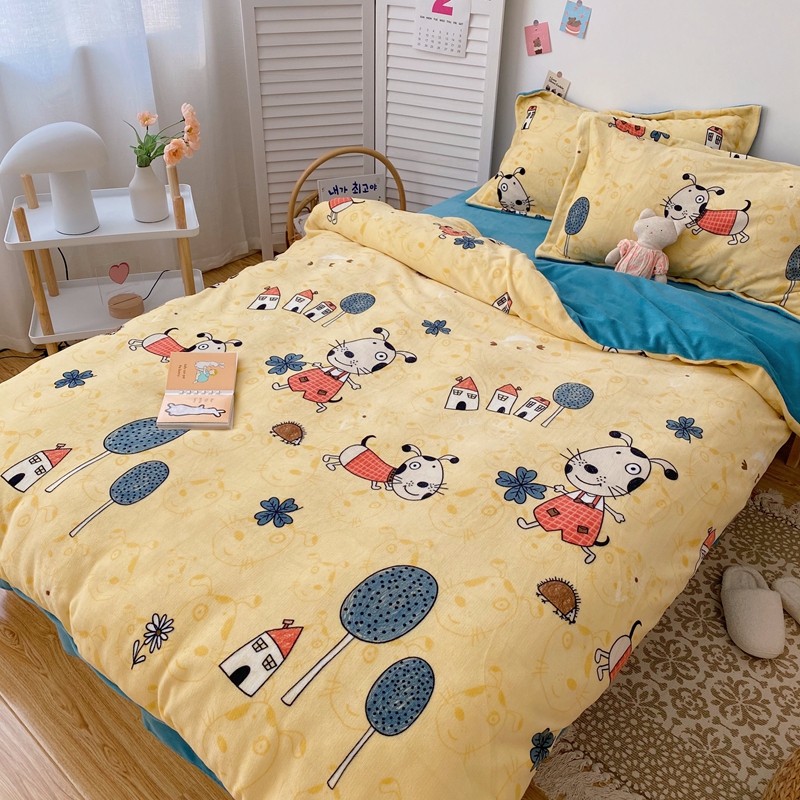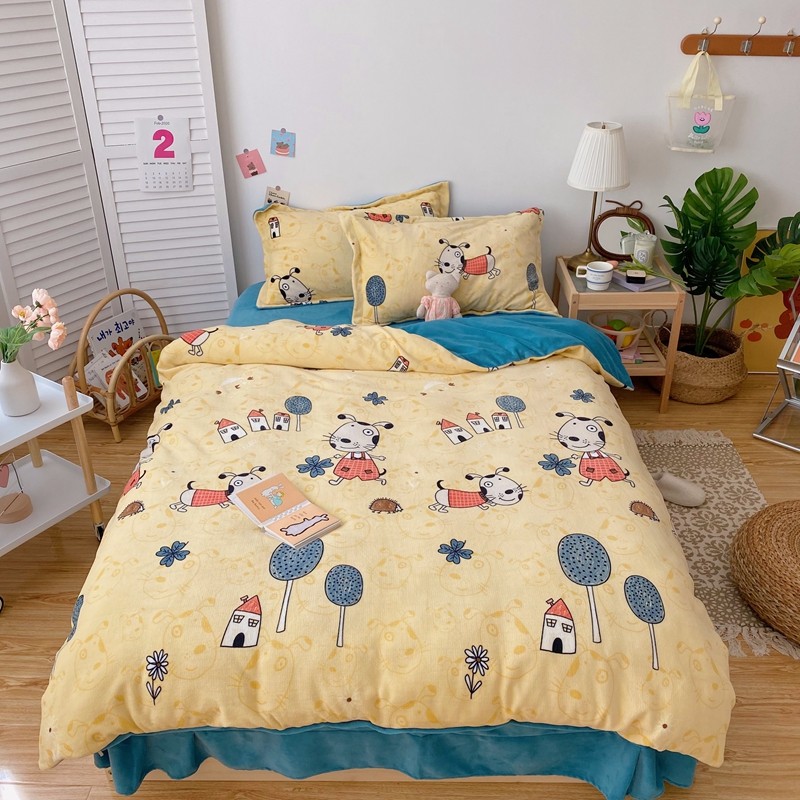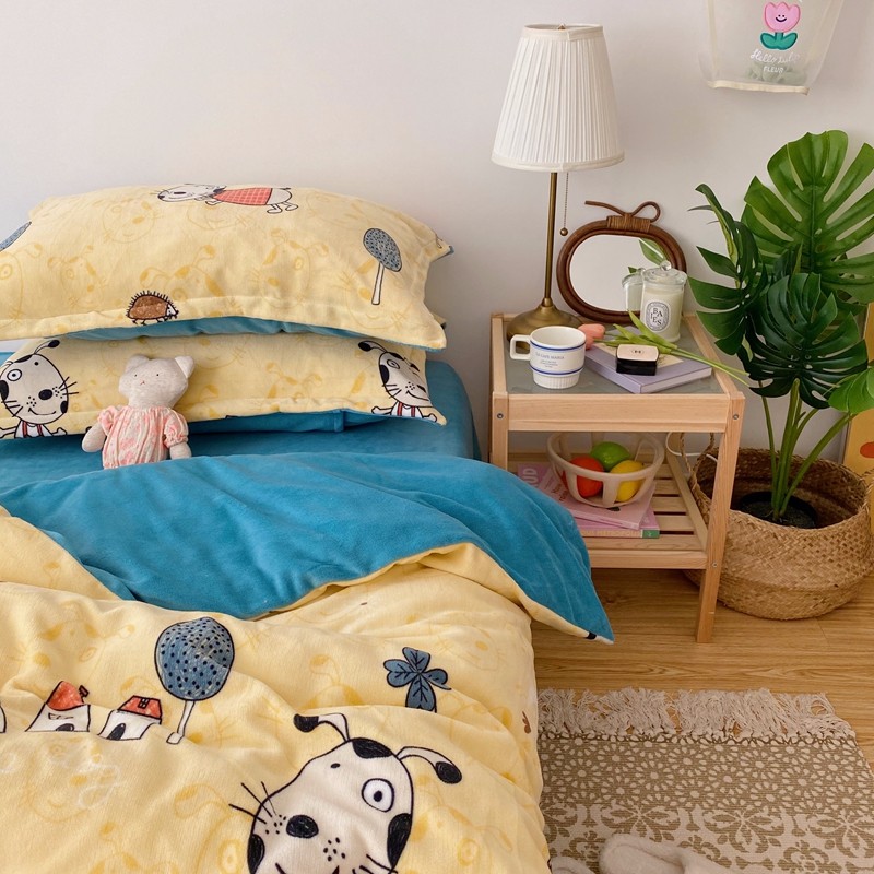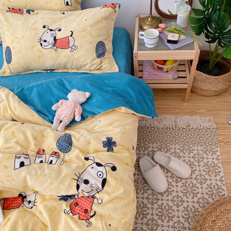 星期八 2020新款秋冬加厚保暖牛奶绒四件套 皮皮狗