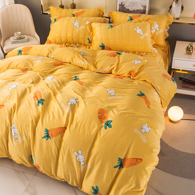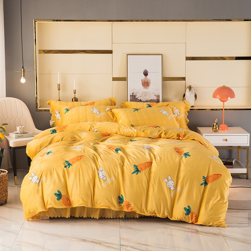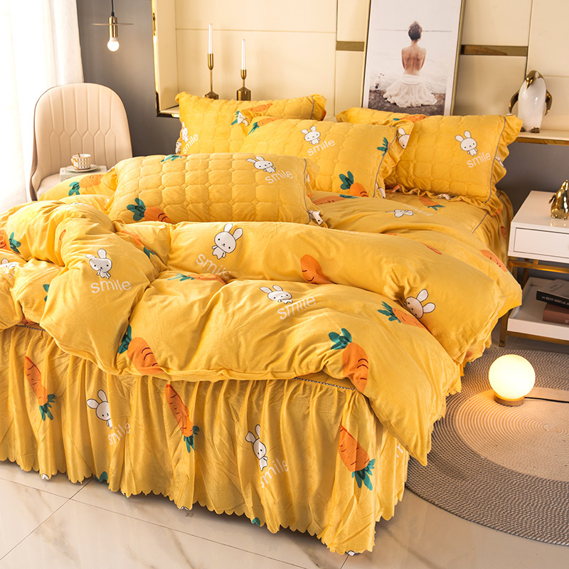商品名称:纽缦 2020新款绒夹棉床裙四件套 萝卜兔子黄