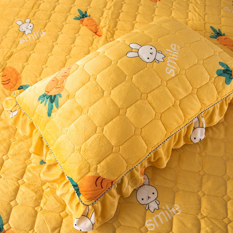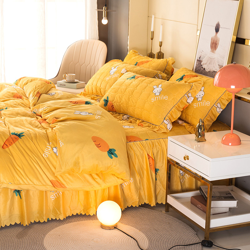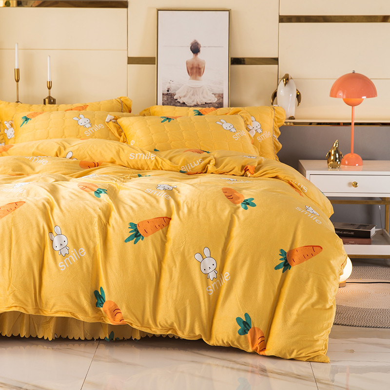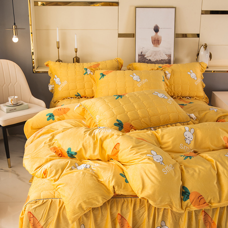 纽缦 2020新款绒夹棉床裙四件套 萝卜兔子黄