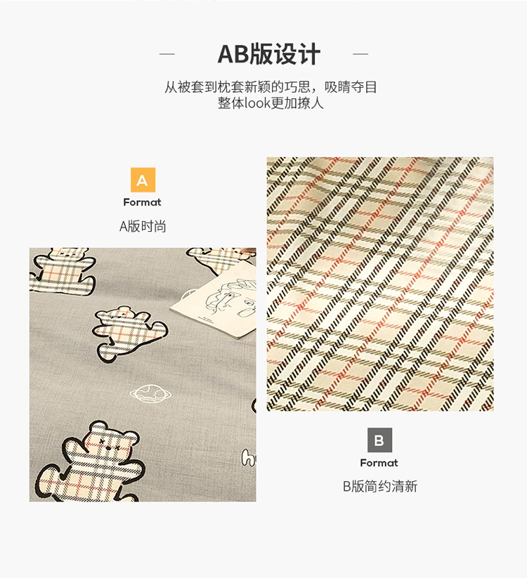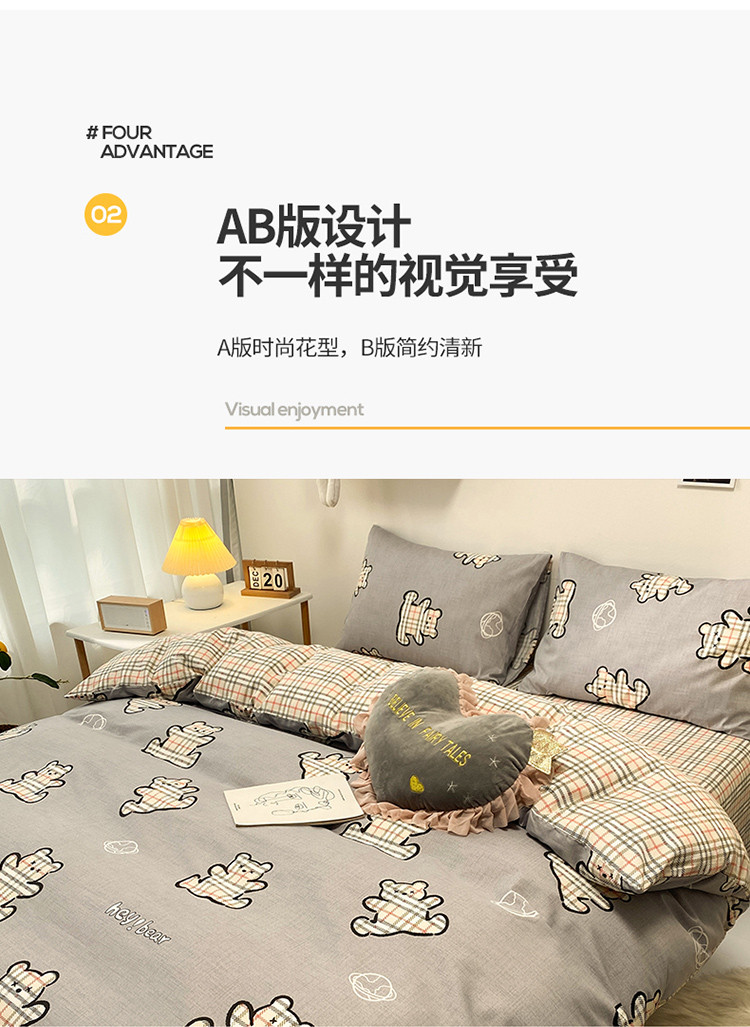 商品名称:捌月13372喷气全棉摩登熊四件套 杰瑞灰