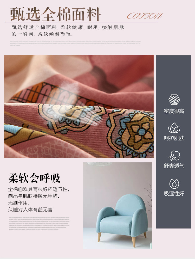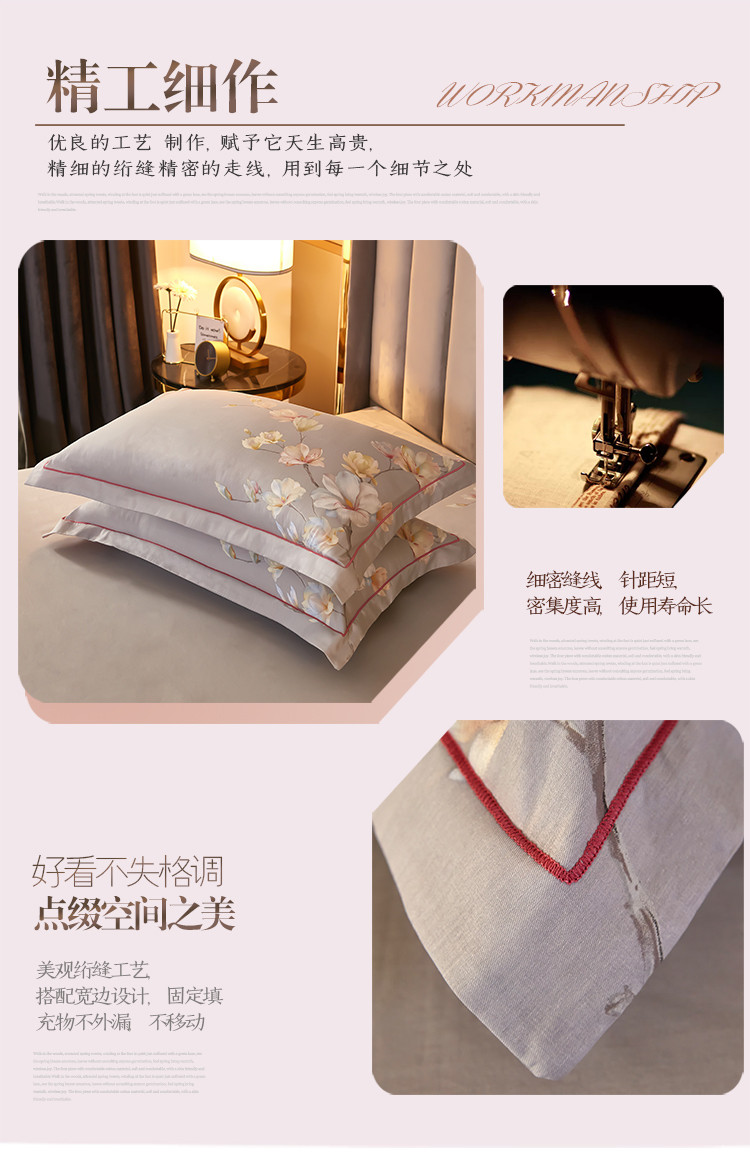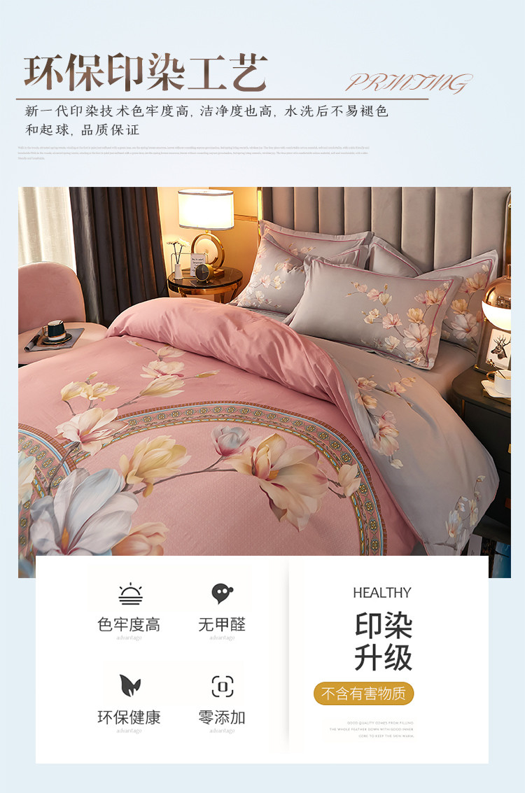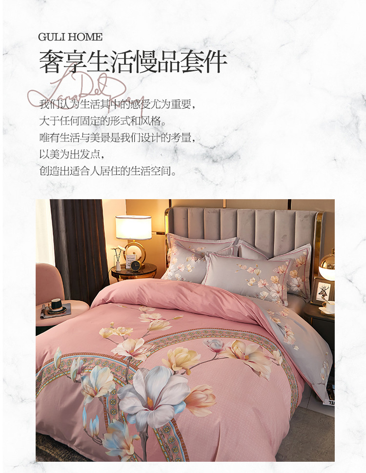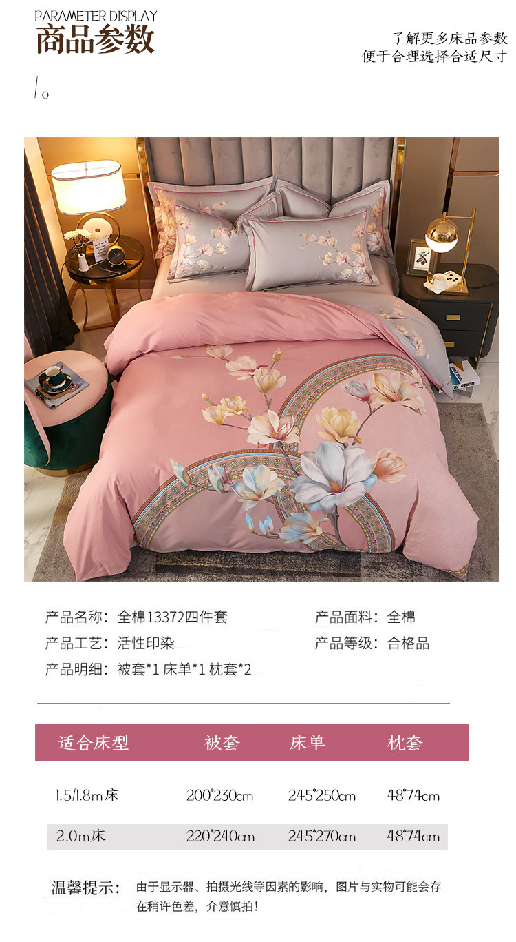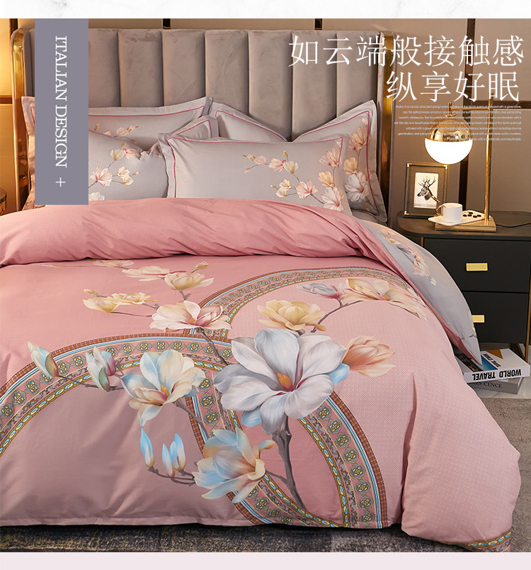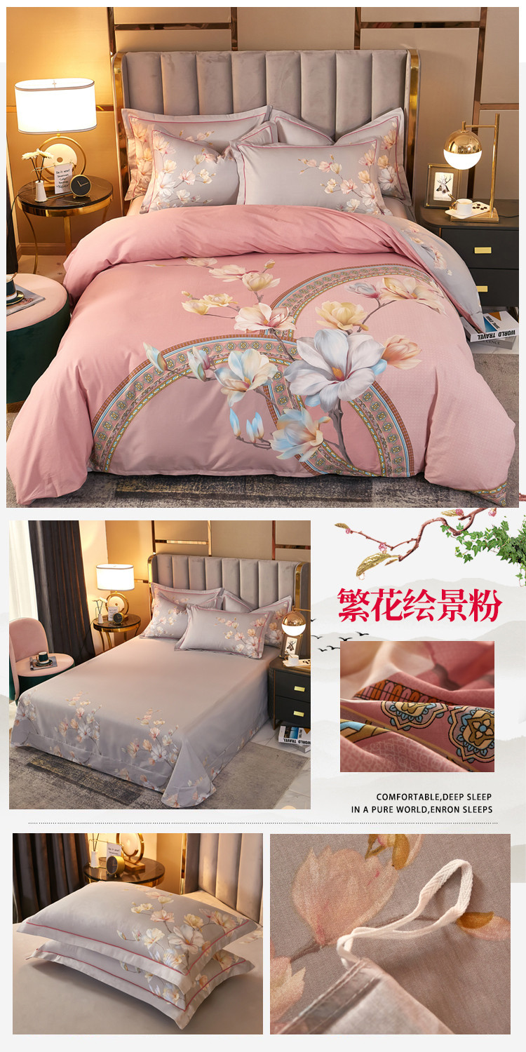 商品名称:雲归梦2021全棉大版四件套第二批花卉格调系列 繁花绘景粉