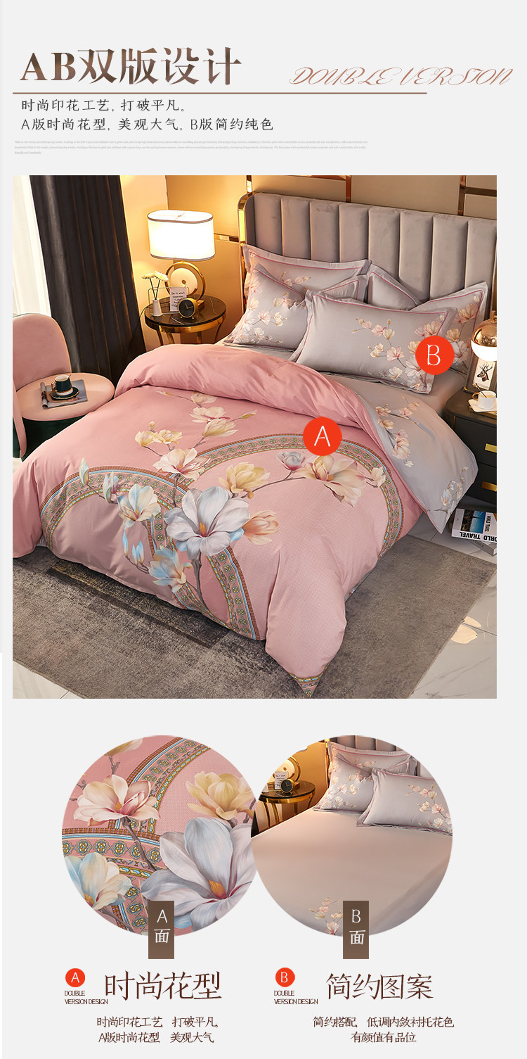 雲归梦2021全棉大版四件套第二批花卉格调系列 繁花绘景粉