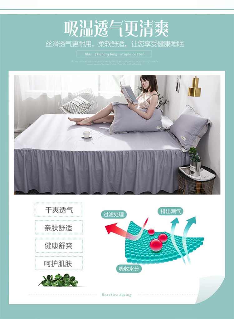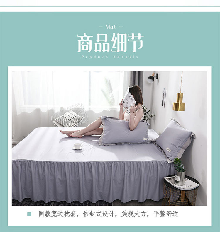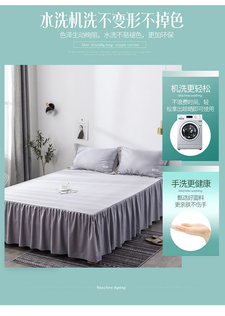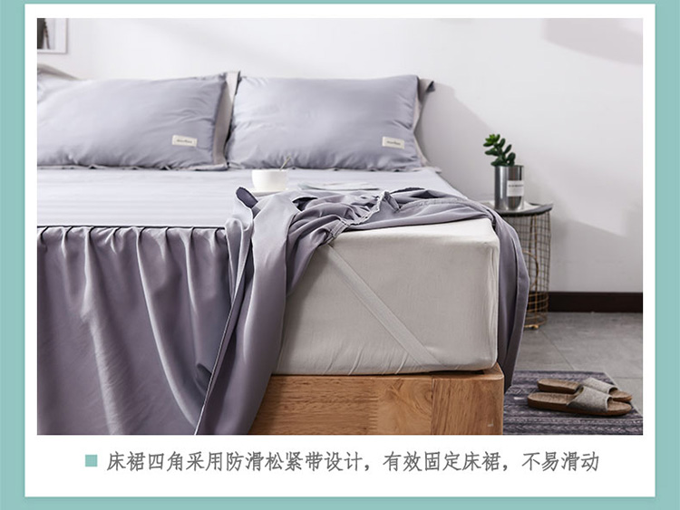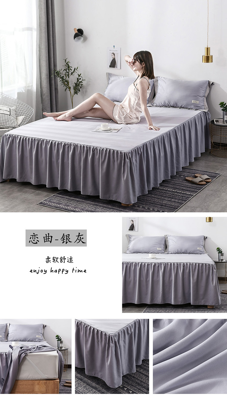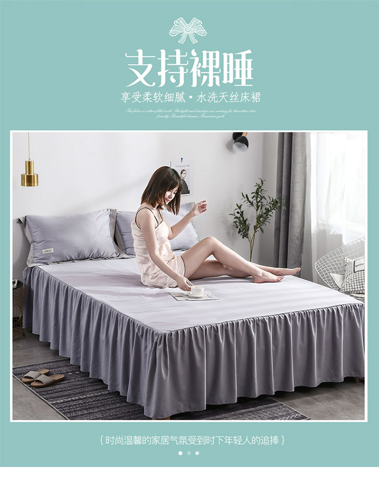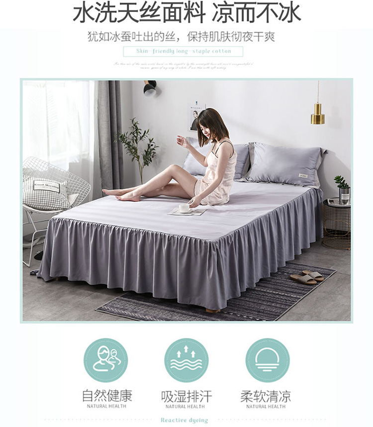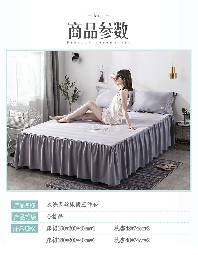 商品名称:意尚风情 2021新款水洗天丝床裙三件套 恋曲-银灰