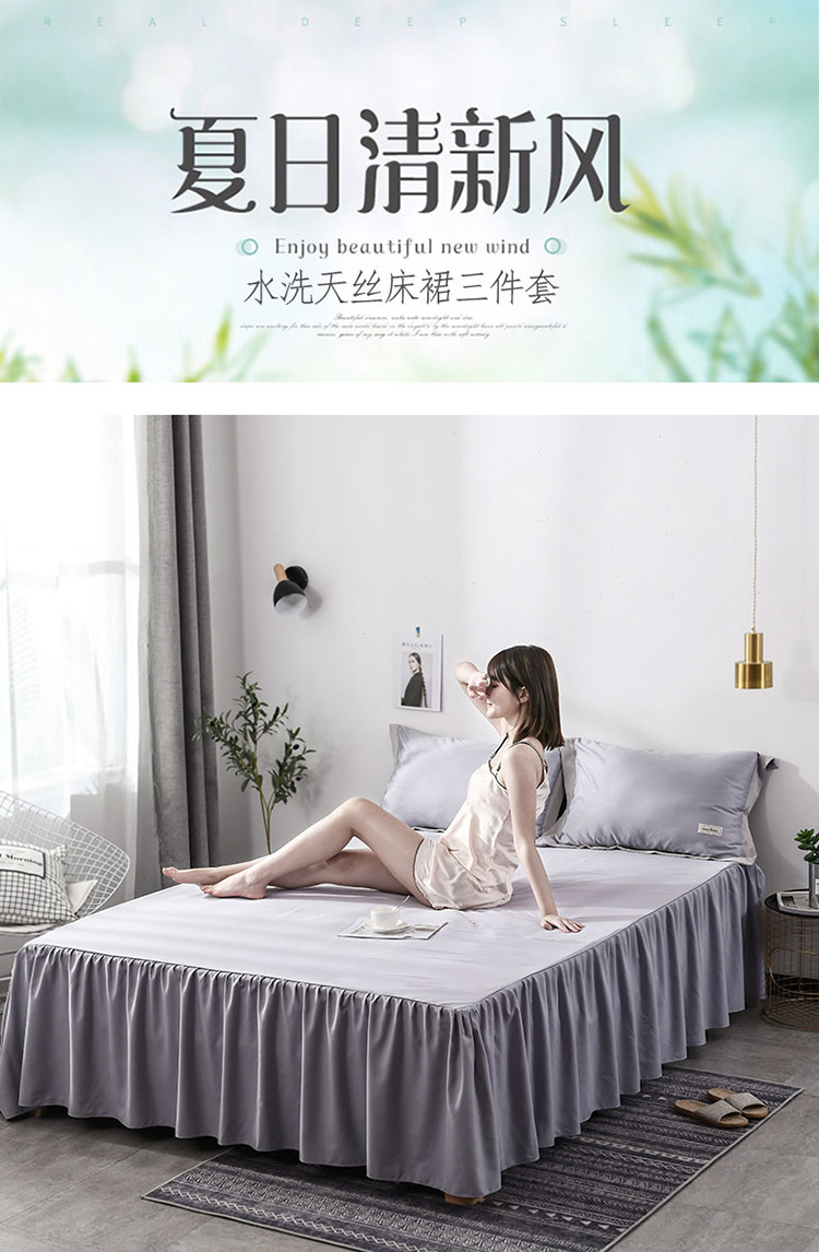 意尚风情 2021新款水洗天丝床裙三件套 恋曲-银灰