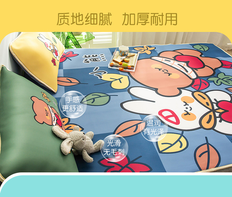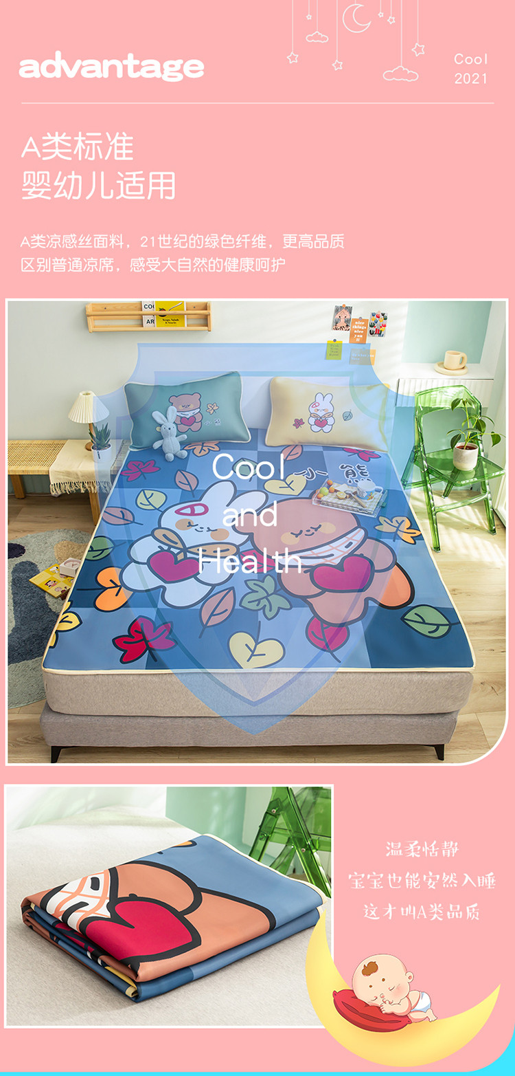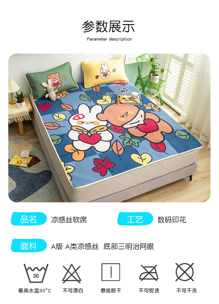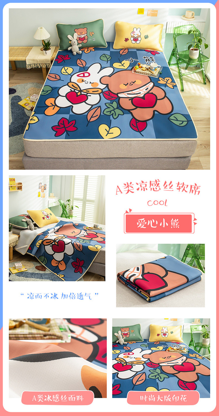 商品名称:塔塔 2025新款凉感丝大版印花软席凉席三件套 爱心小熊