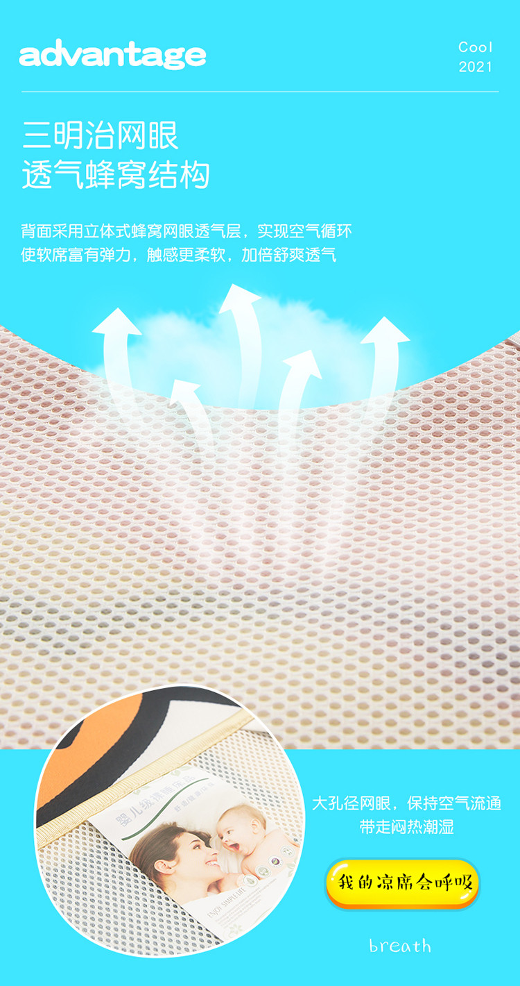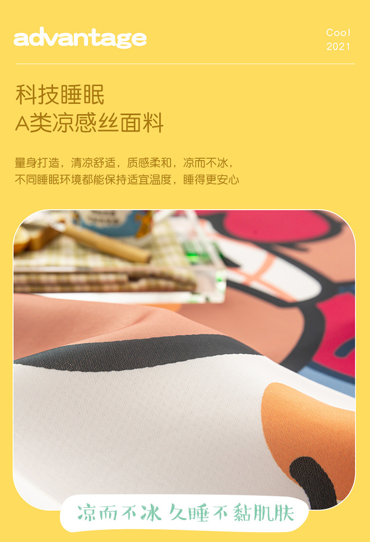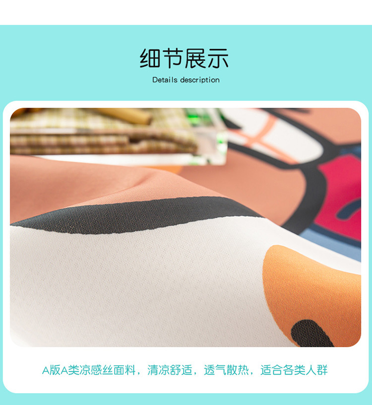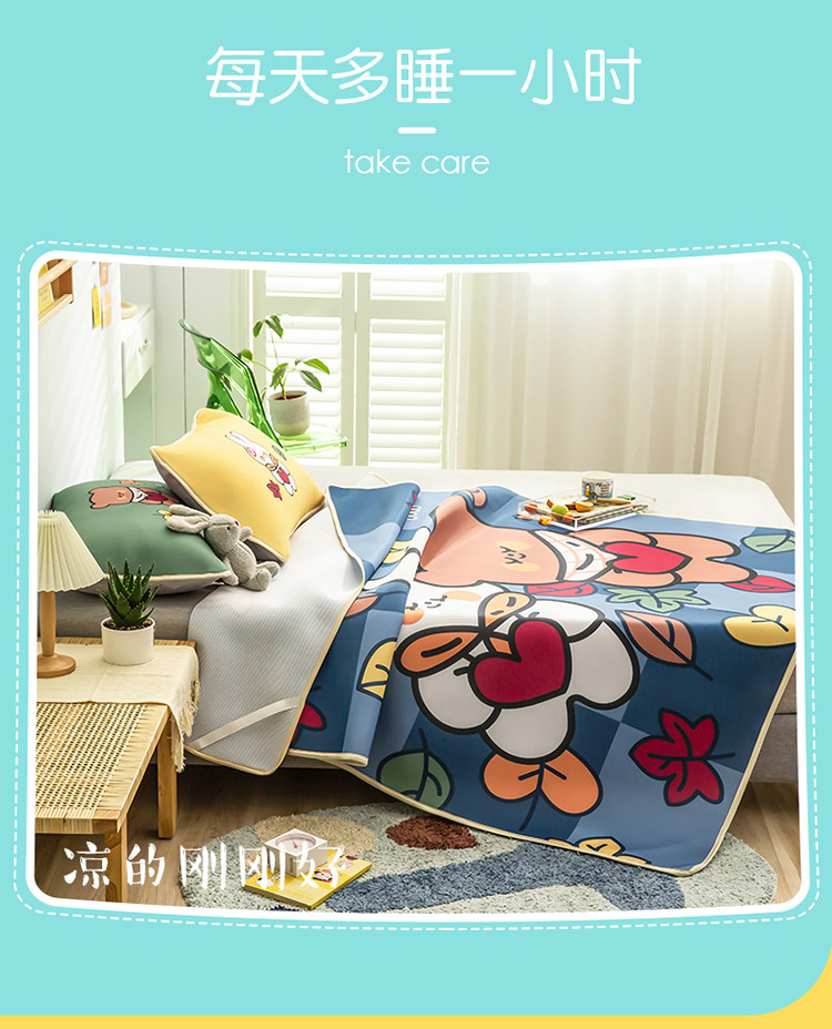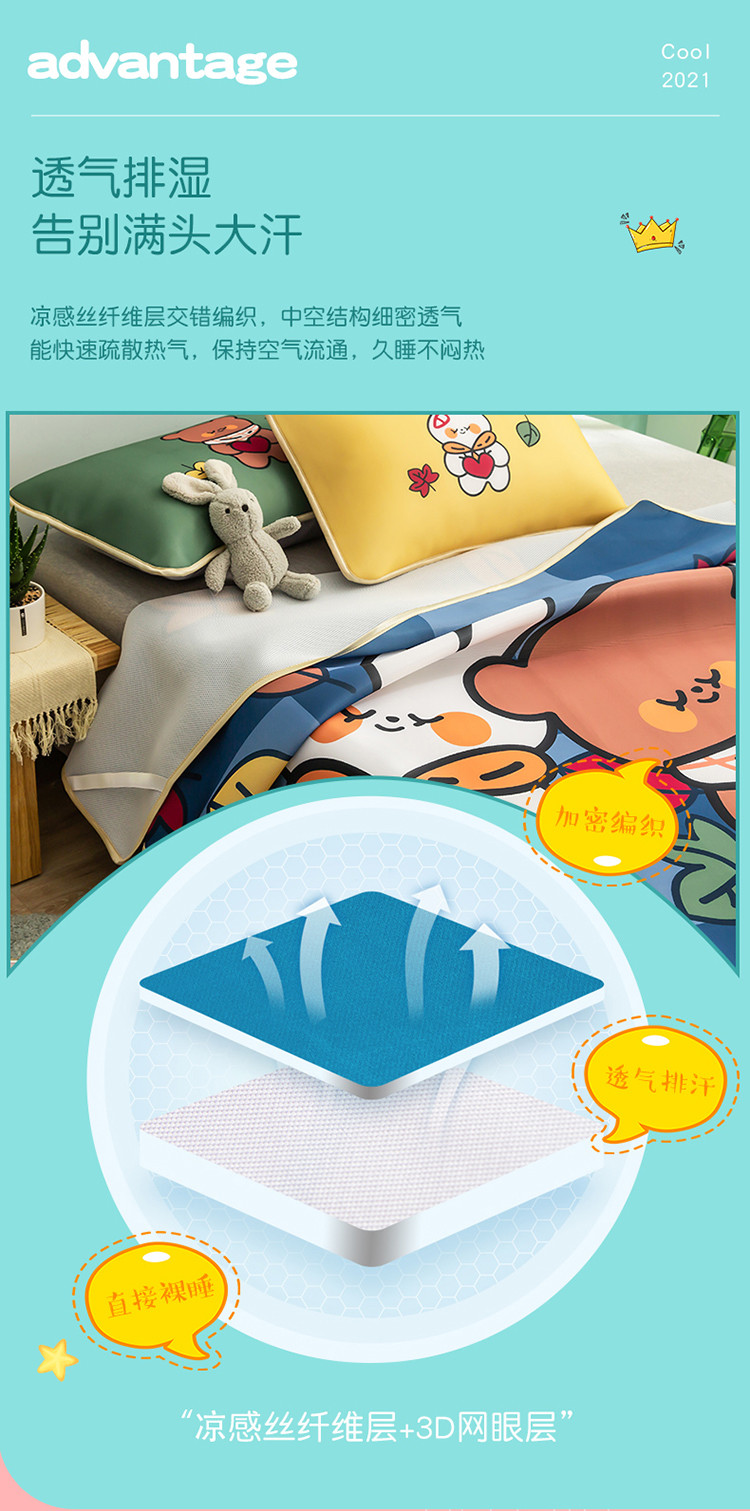 商品名称:塔塔 2025新款凉感丝大版印花软席凉席三件套 爱心小熊