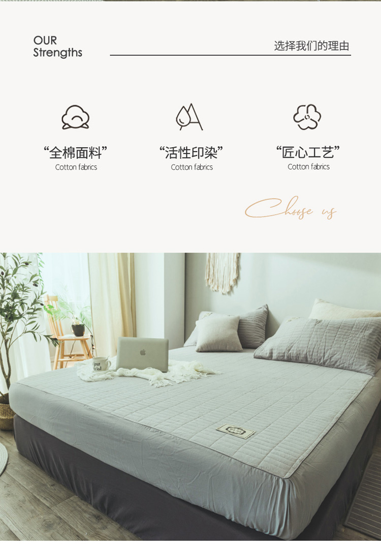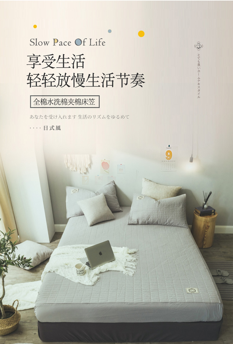 菊上 2021新款日式-水洗棉床笠(全棉夹棉款) 灰尼