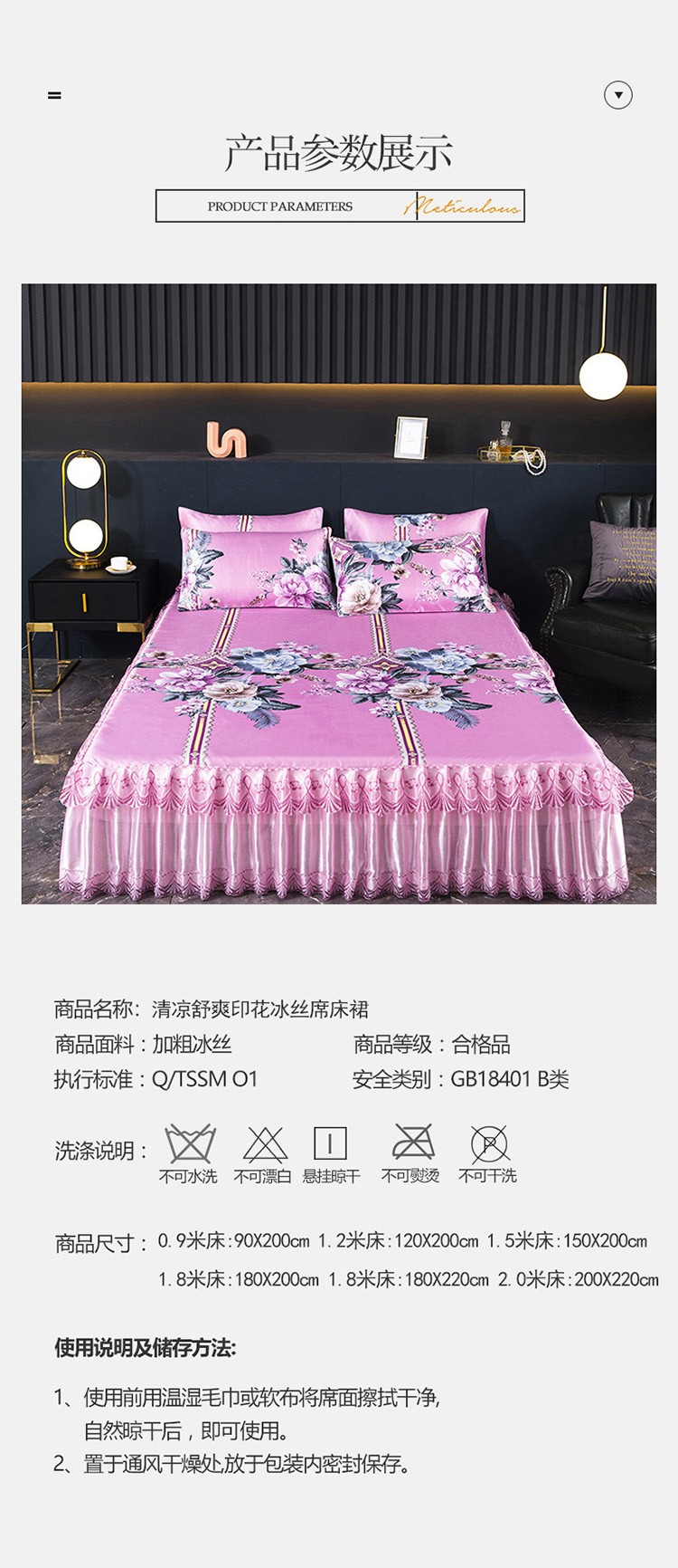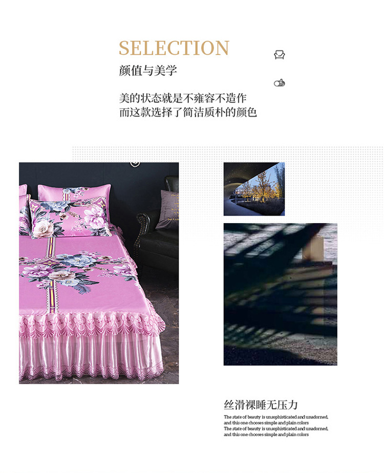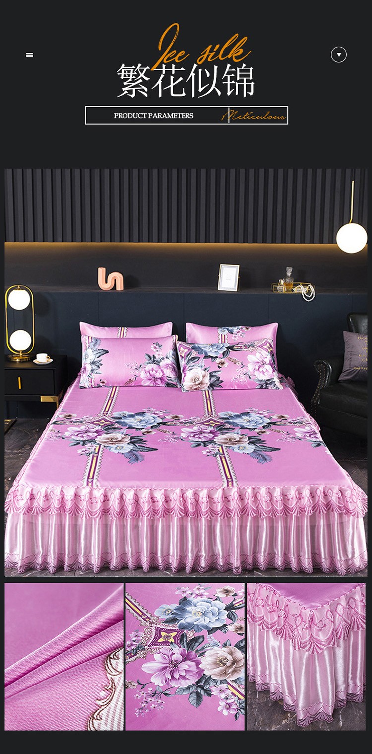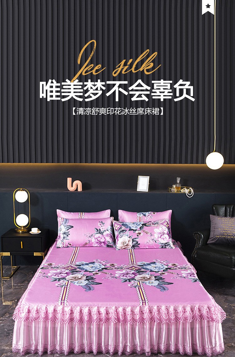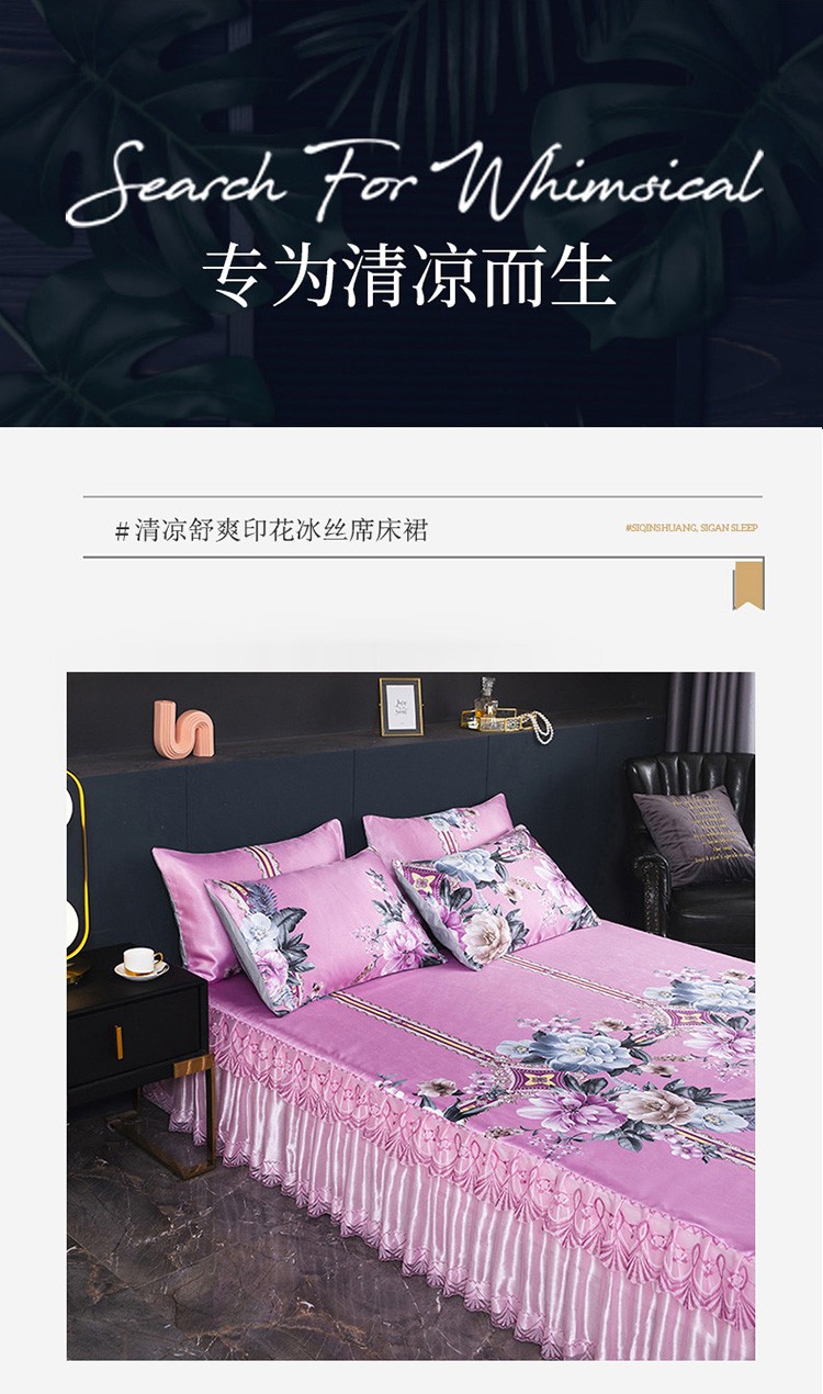 商品名称:迷仙巢2021新款冰丝凉席(床裙款) 繁花似锦