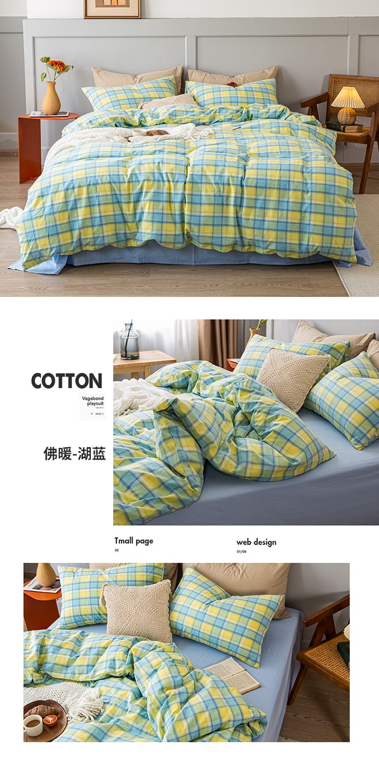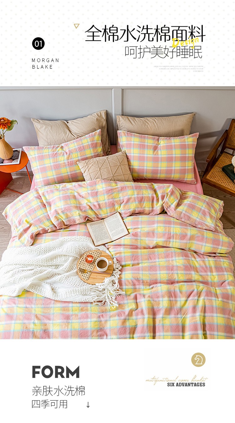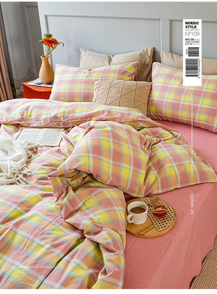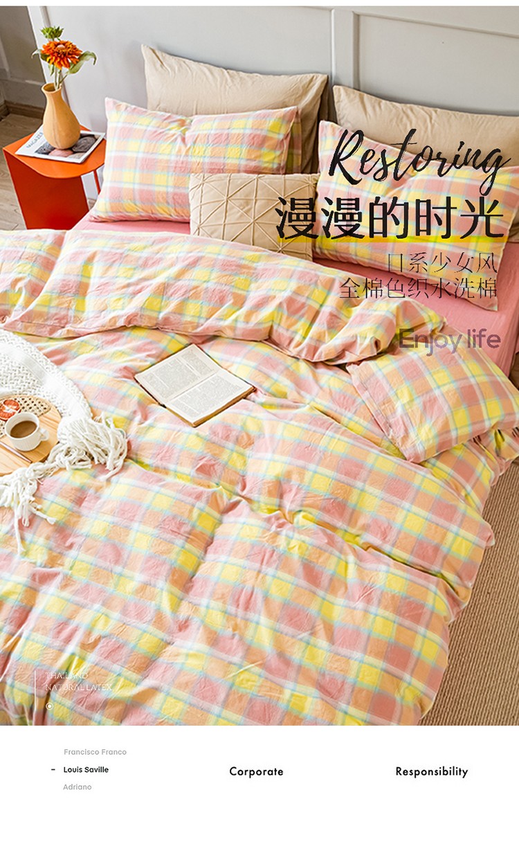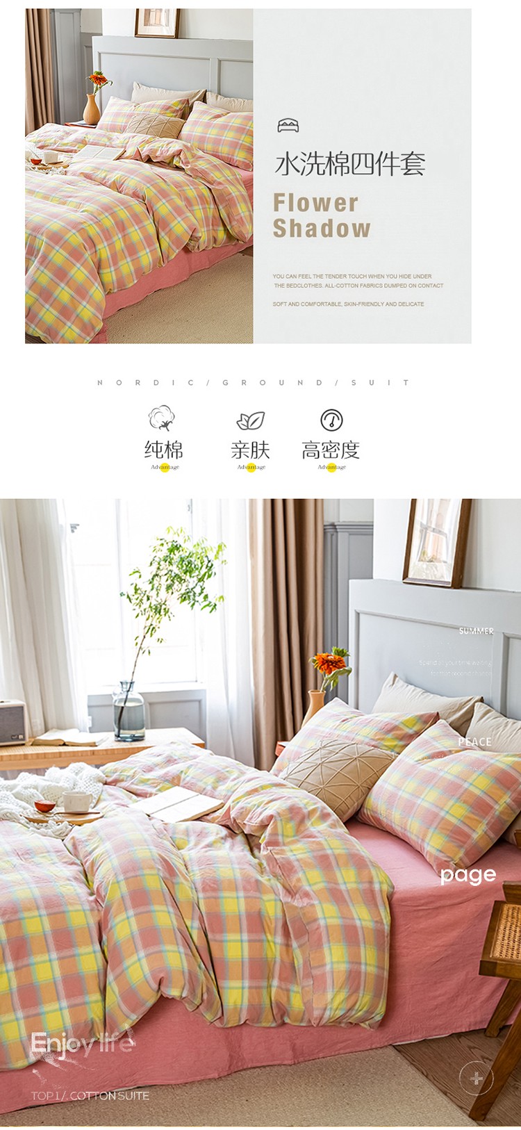 (总)艾咪 新款日系少女风全棉色织水洗棉四件套三件套