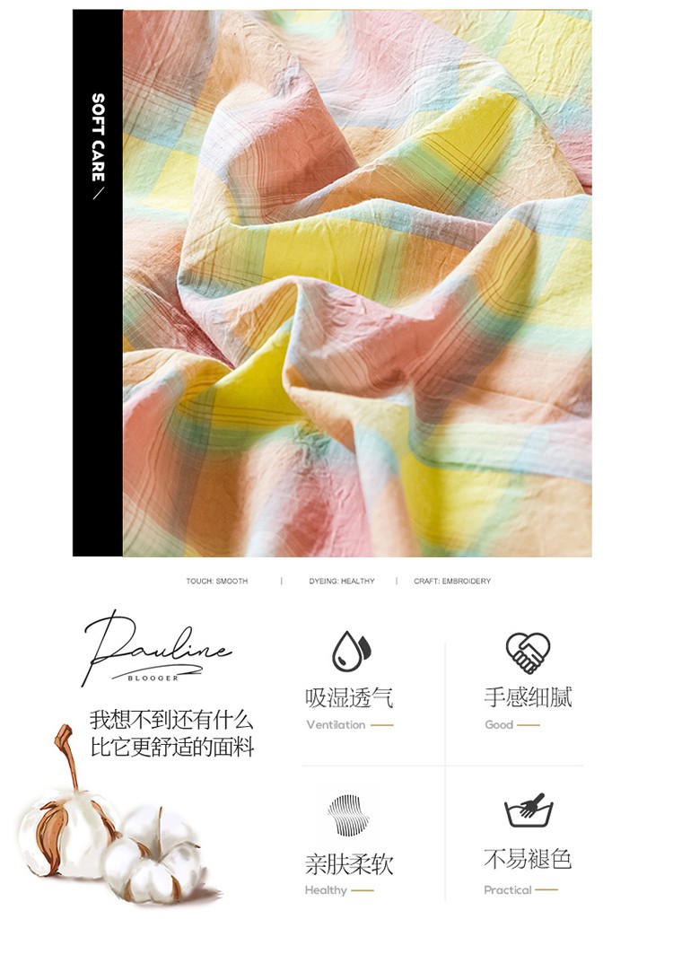 商品名称:(总)艾咪 新款日系少女风全棉色织水洗棉四件套三件套