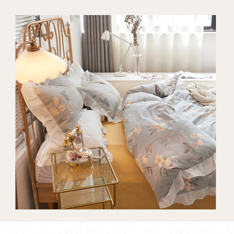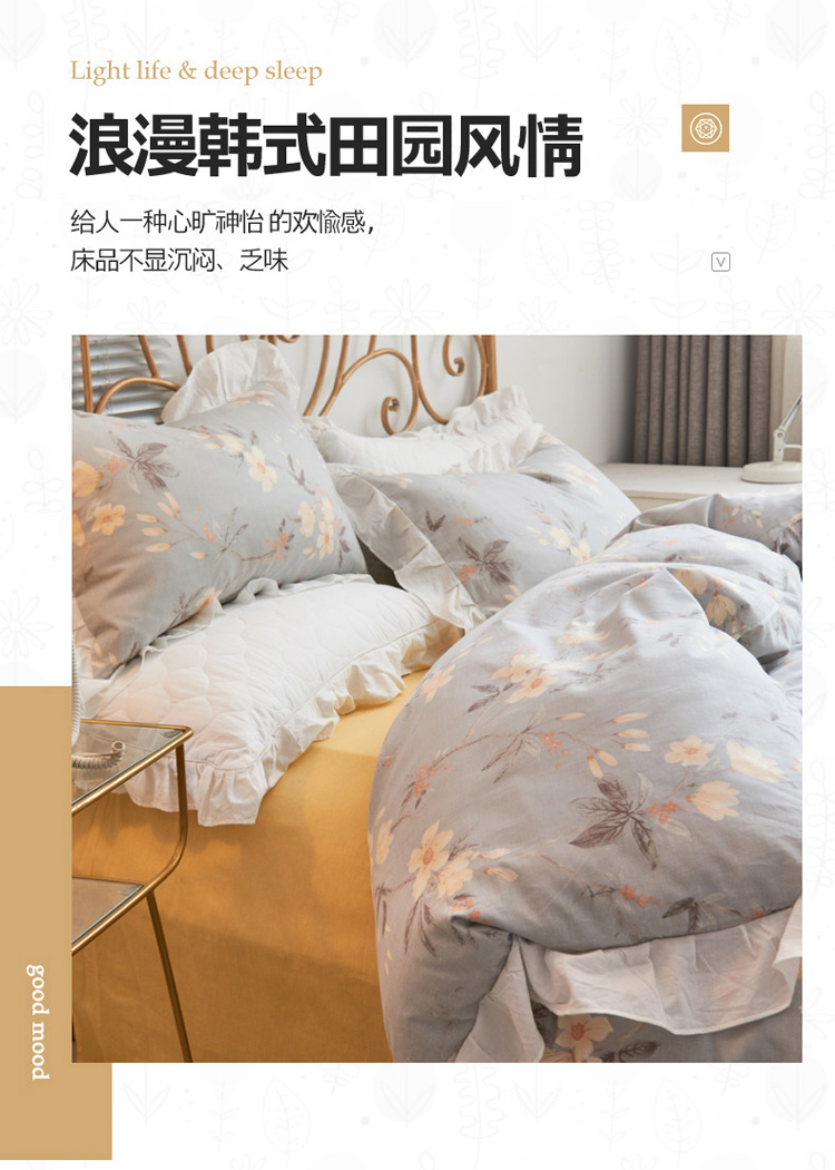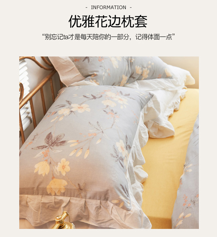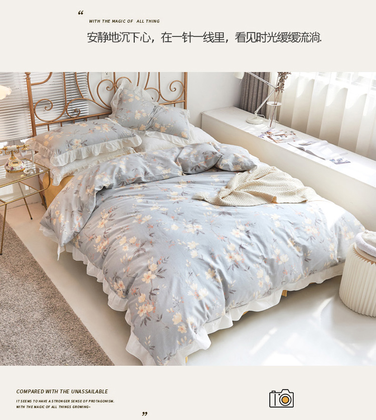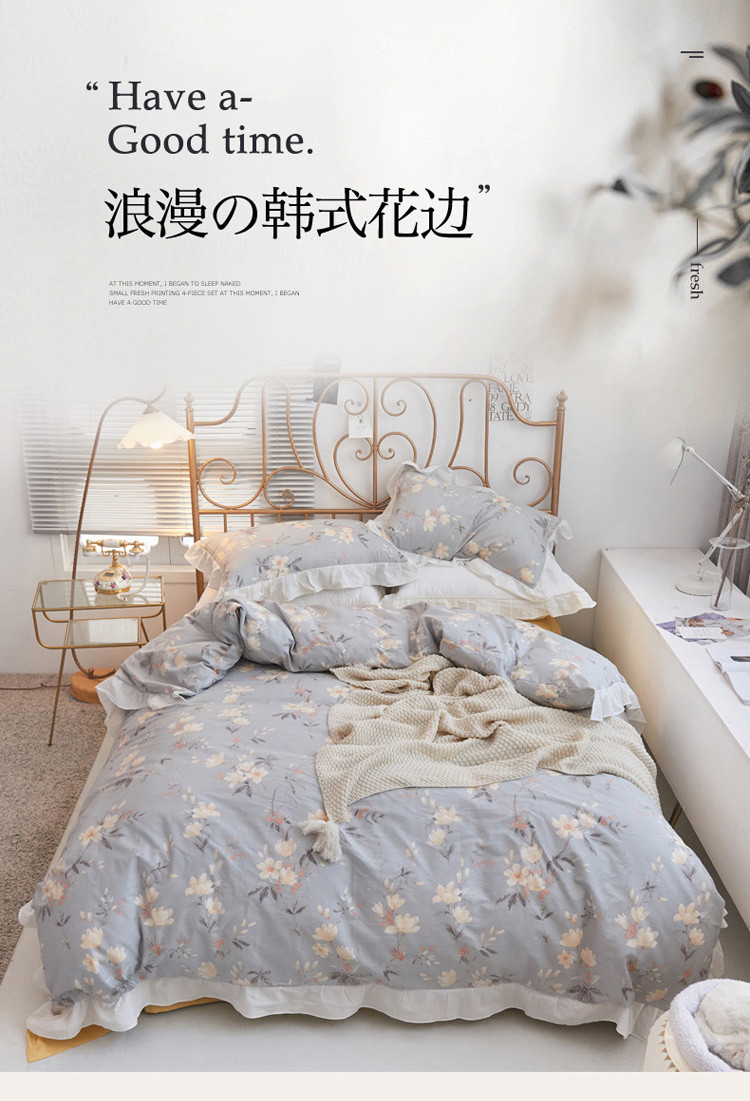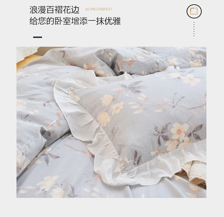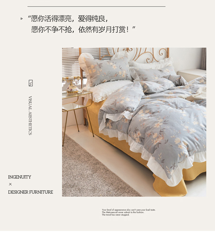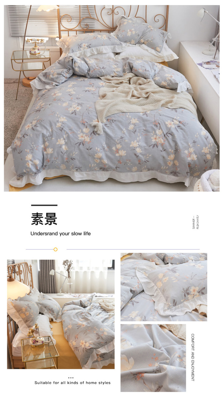 捌月 2021新款全棉田园花边款四件套 素景