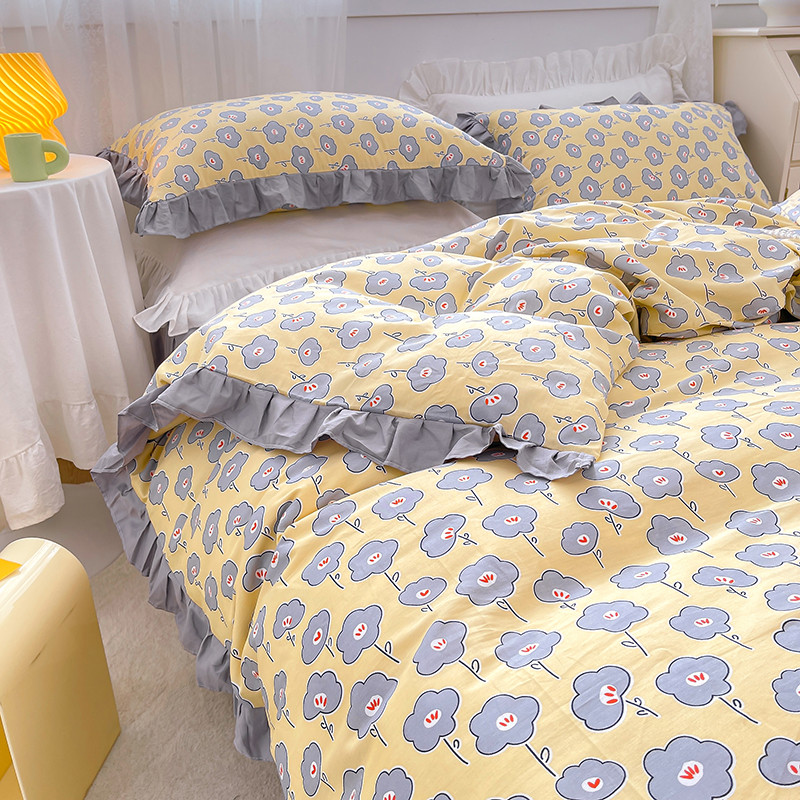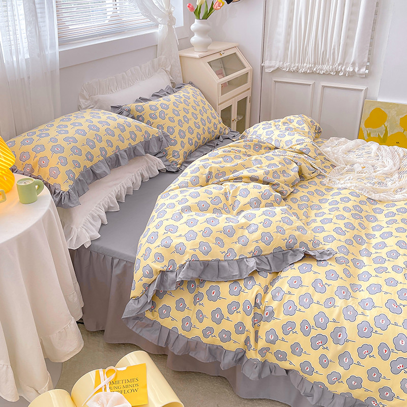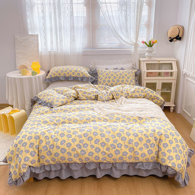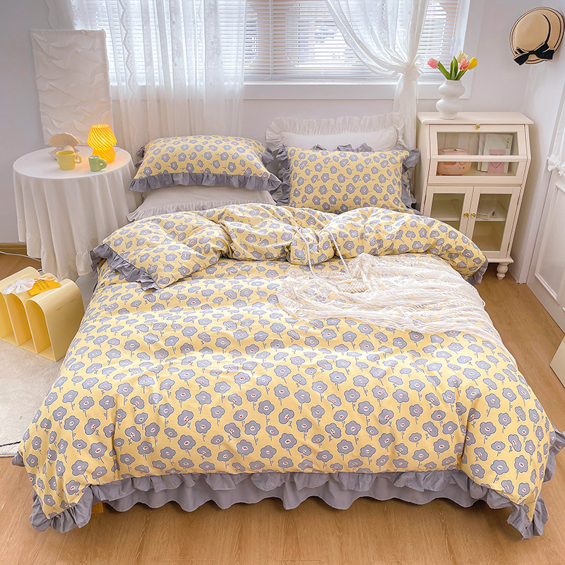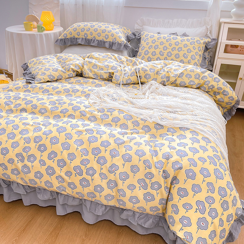 金丝鸟 2021新款全棉韩版床裙款四件套 花语床裙款