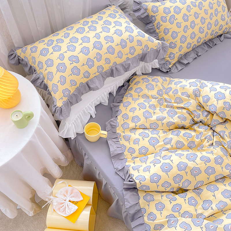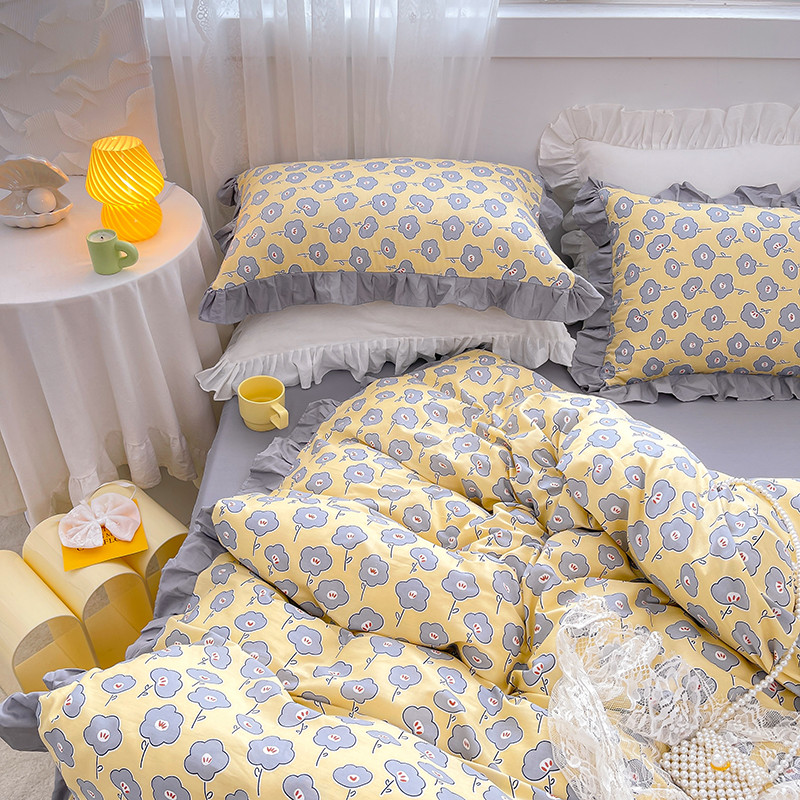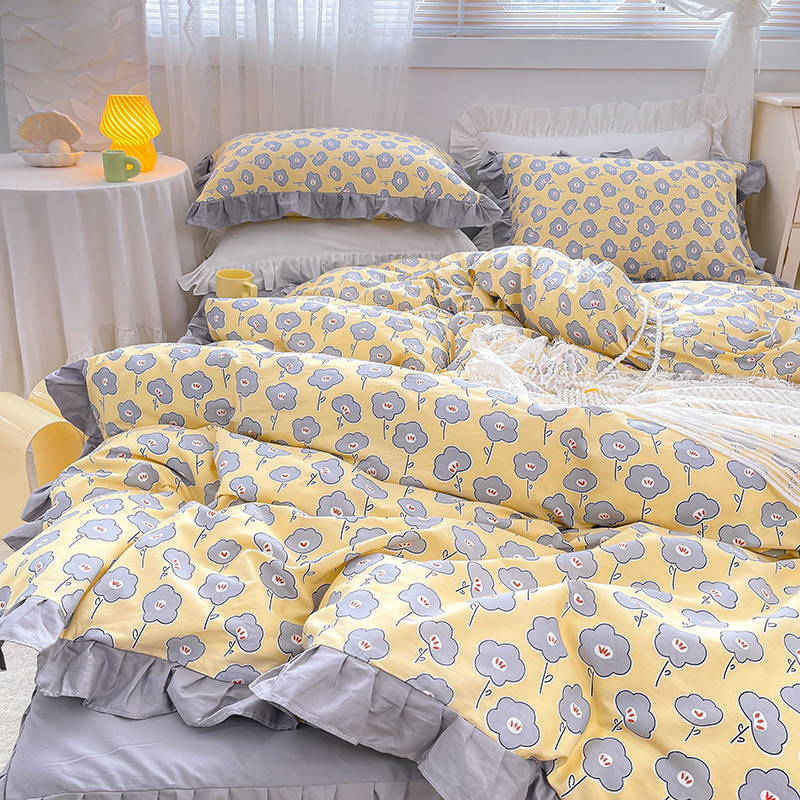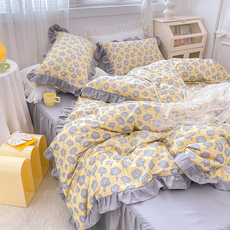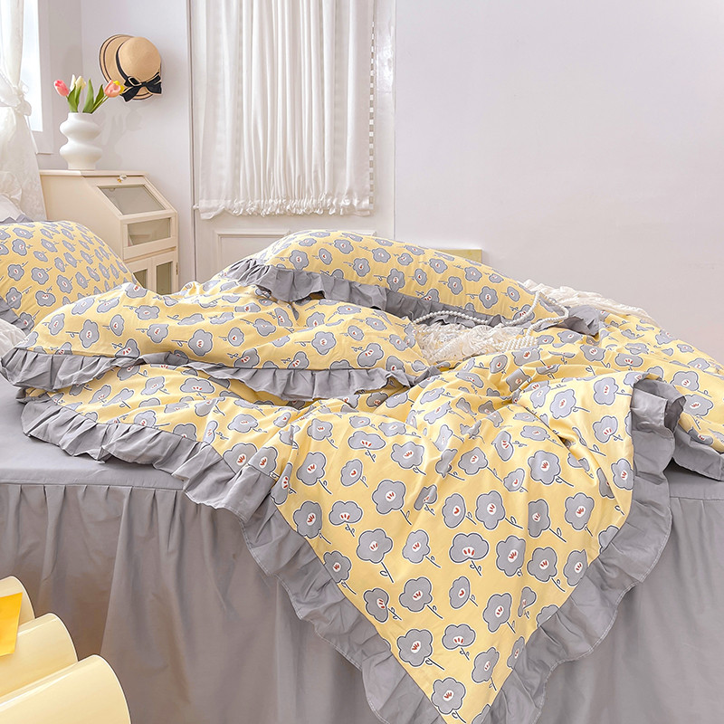 金丝鸟 2021新款全棉韩版床裙款四件套 花语床裙款