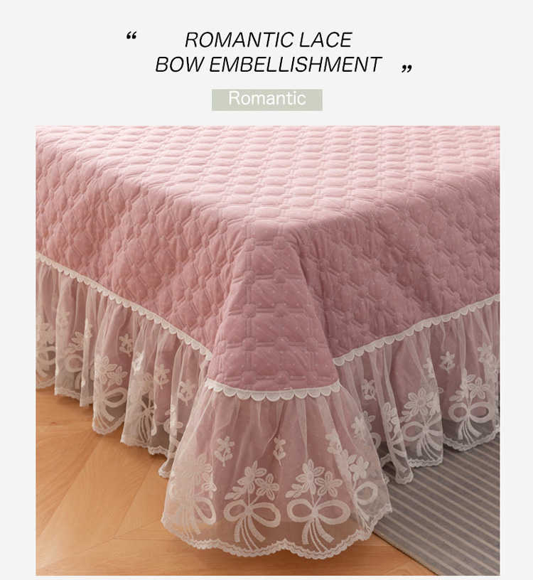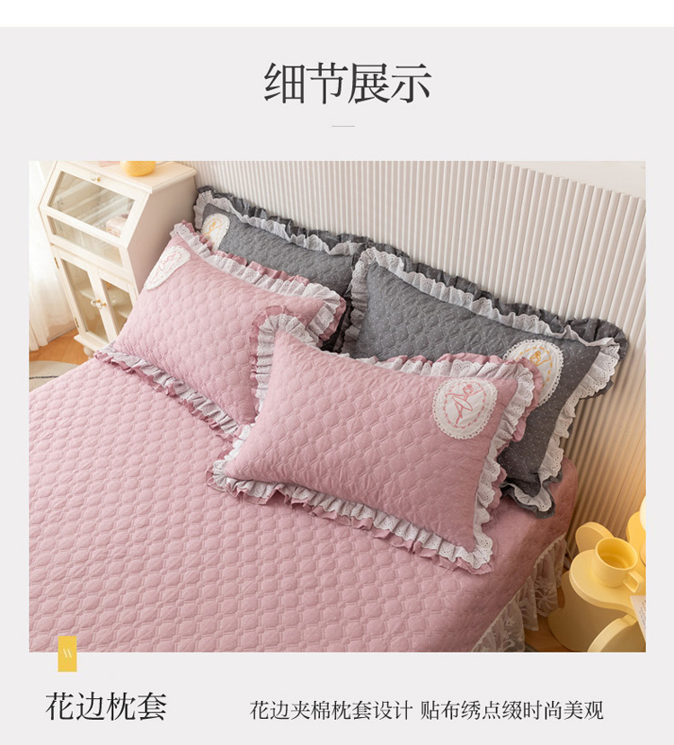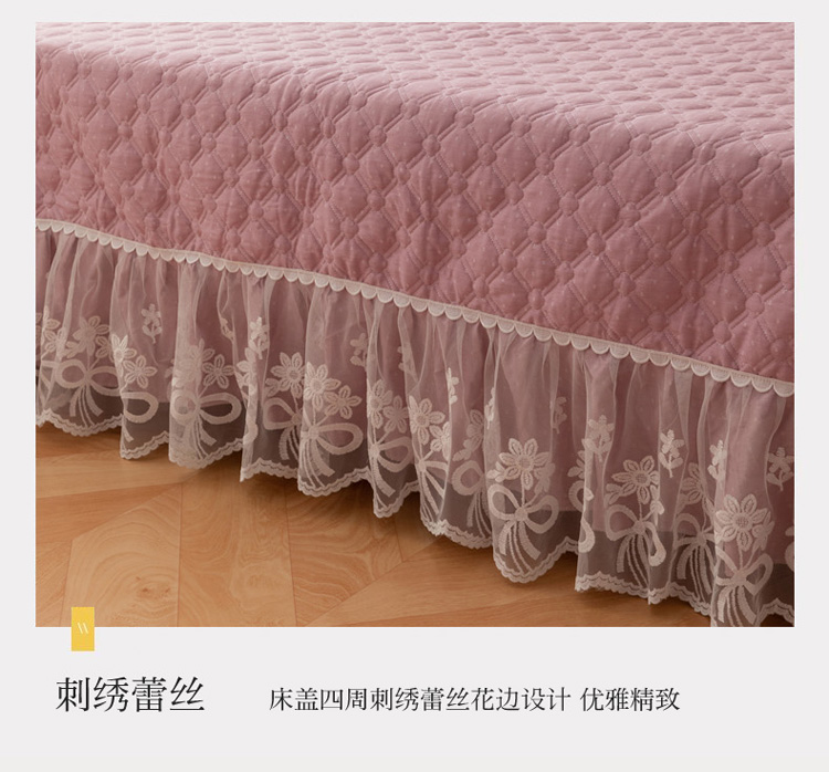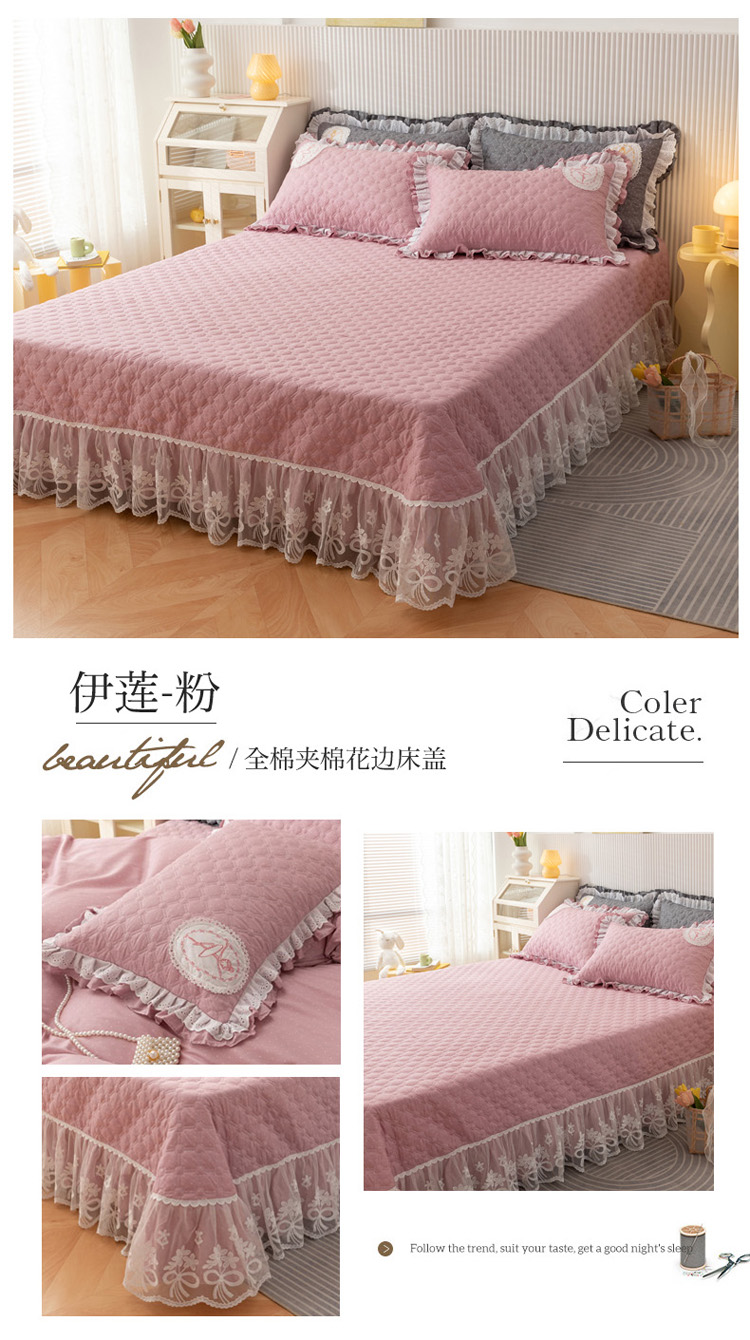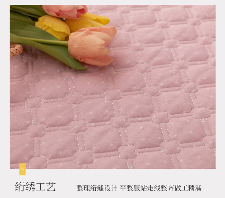 菊上家纺 2021新款全棉贴布绣花花边单床盖 伊莲-粉