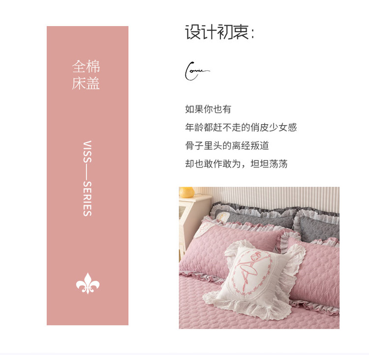 (总)菊上家纺 2023秋冬新品法式花边全棉单床盖,小欢喜,花千骨,小幸运,安妮紫,布拉格,玛雅灰,罗蔓莉,恋花影,卡町绿,薇薇安,玫瑰粉,郁金香,白玫瑰,春光里,伊甸园,慕时光,玛丽娅,小时光