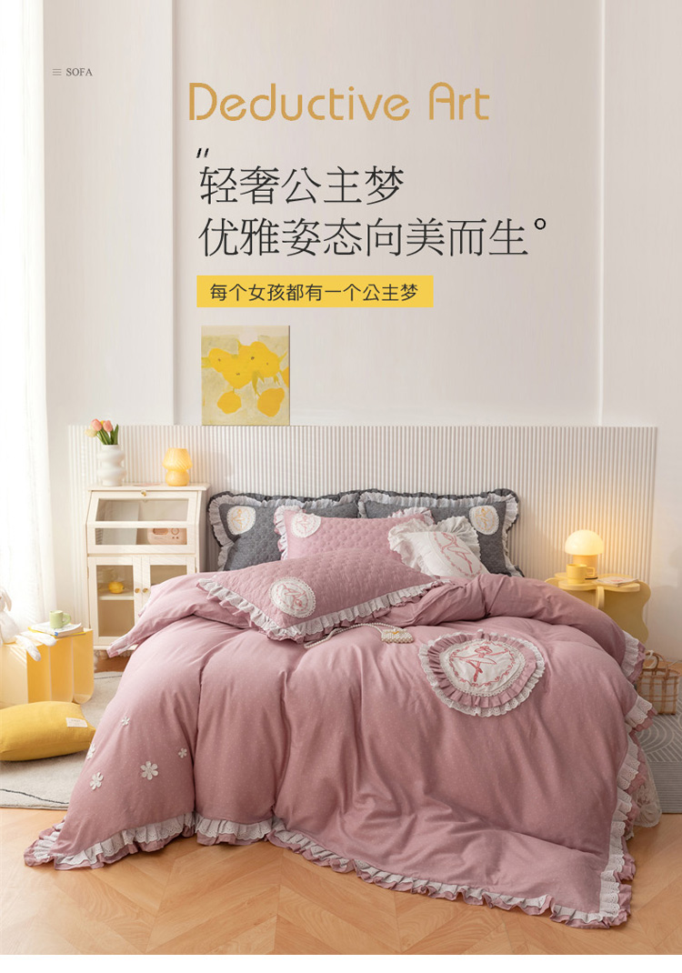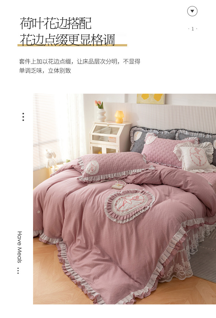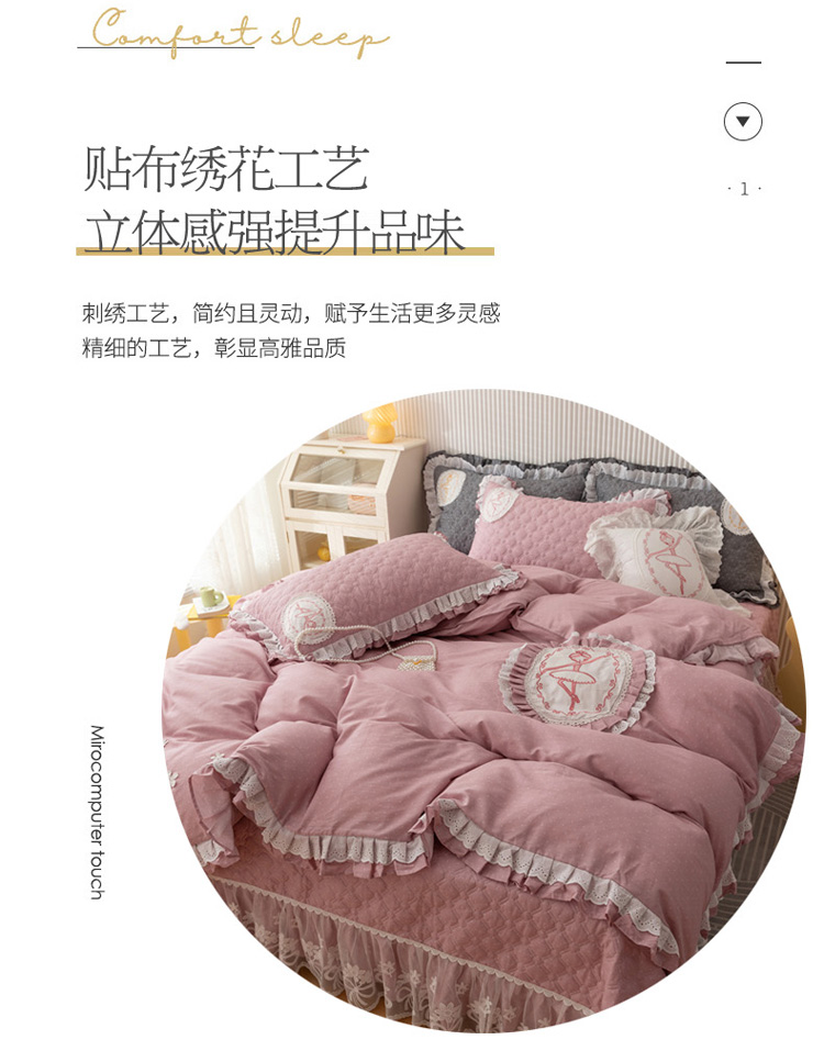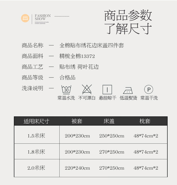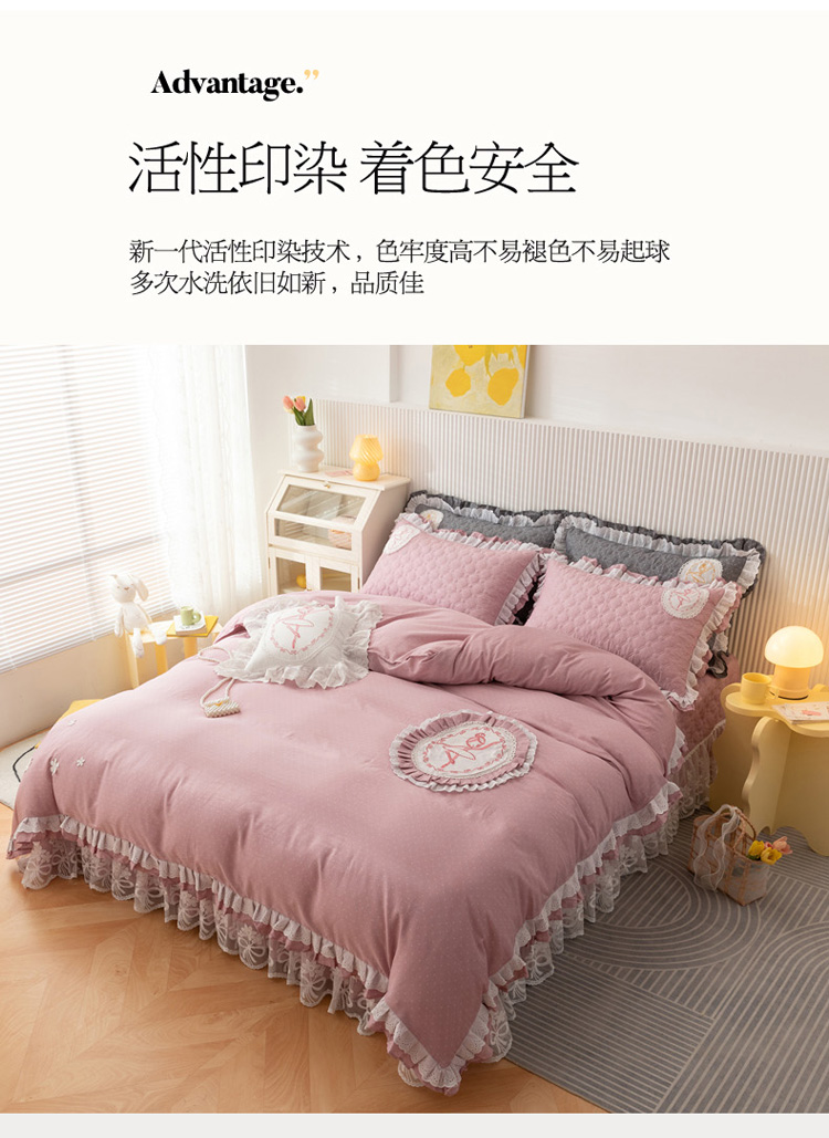 当前位置: 91家纺网 > 商品网购 > 床品套件 > 四件套 > 全棉普通四件套 > (总)菊上家纺 2021新款全棉贴布绣花花边床盖四件套