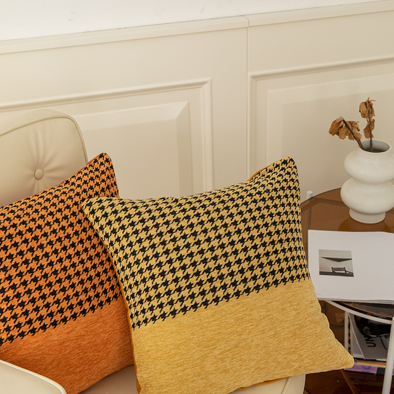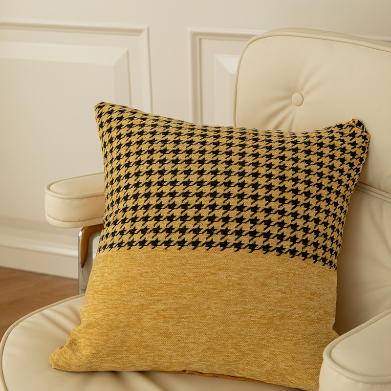 希诺千鸟格抱枕 轻奢民宿北欧百搭风抱枕沙发靠垫 千鸟格-黄