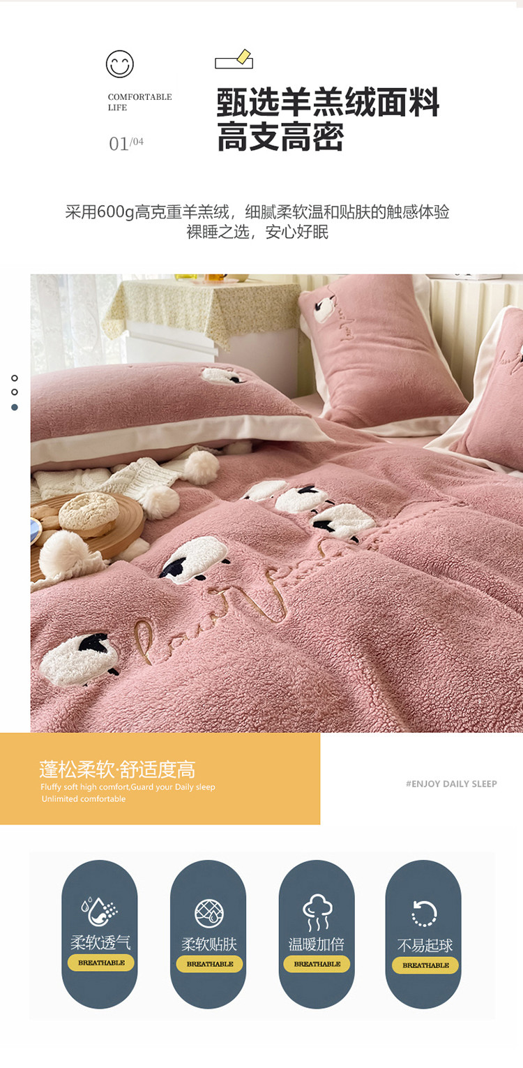 (总)眠屿家纺 2021新款高克韩国绒四件套