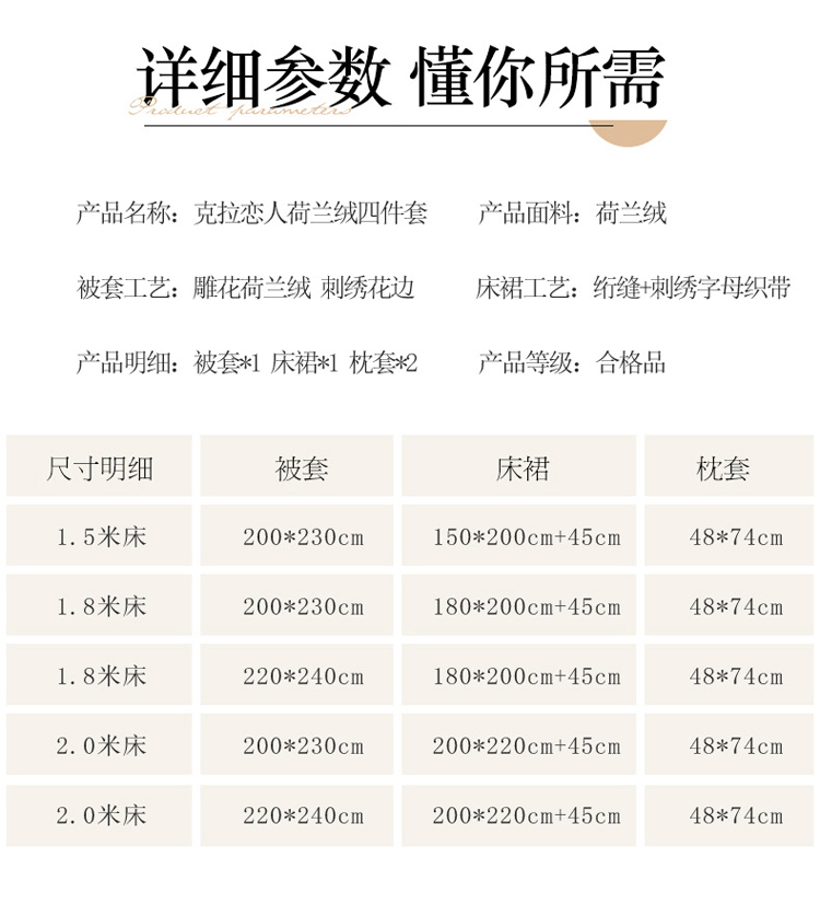 1.5米床裙款四件套(被套200*230) | ¥240.00 |